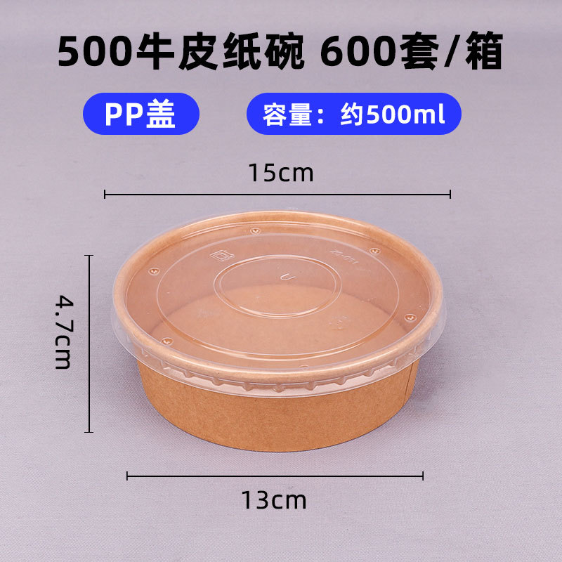 500 kraft paper bowl + pp cover (600 sets)