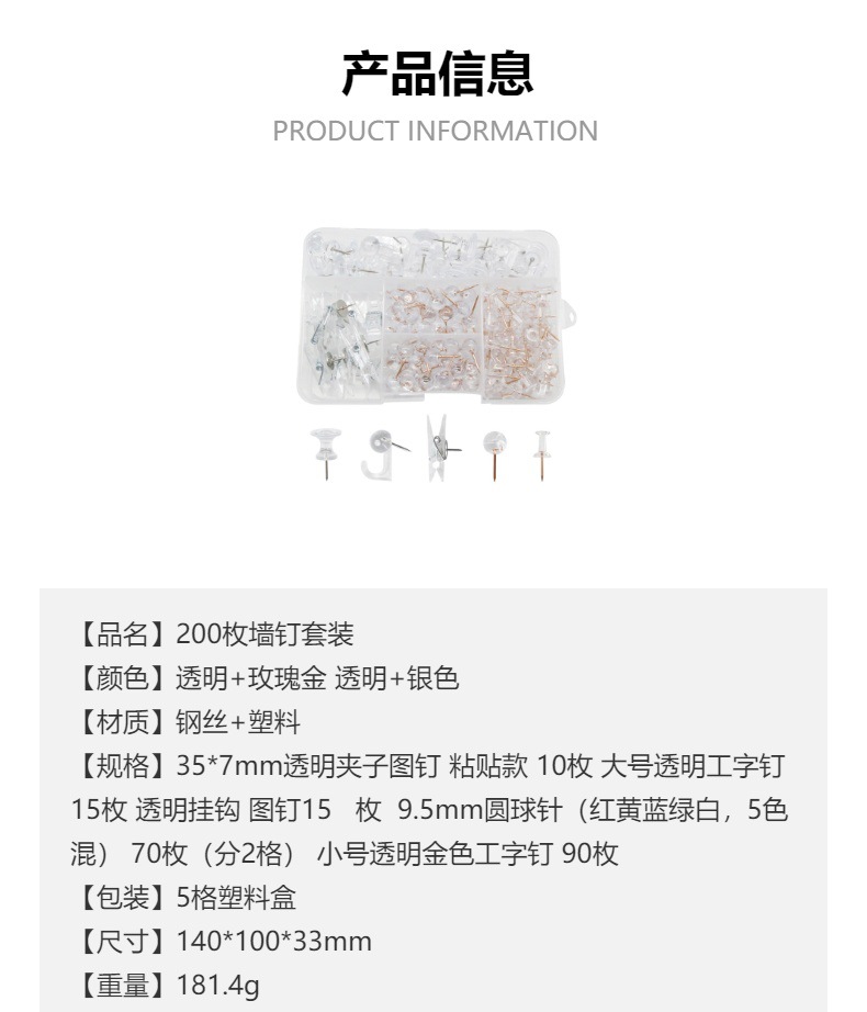 Factory Wholesale 200 Boxed Transparent Push Pin Suit Office Corkboard Push Pin Clip Pushpin Push Pin