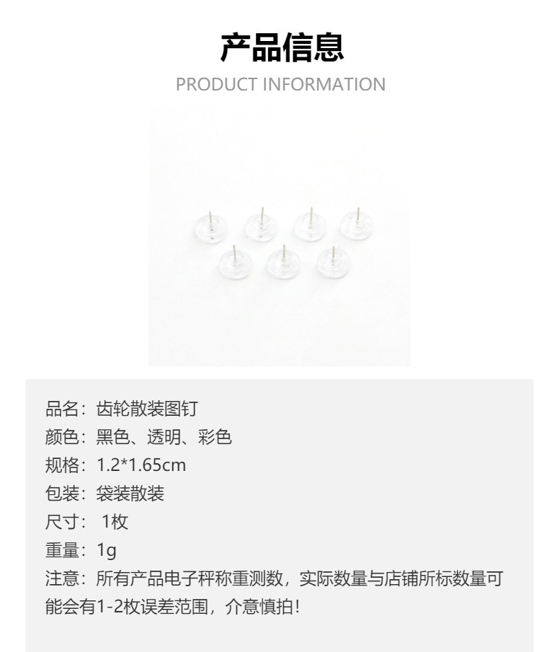 bulk black transparent color gear push pin home office school handmade culture wall decoration fixed studs