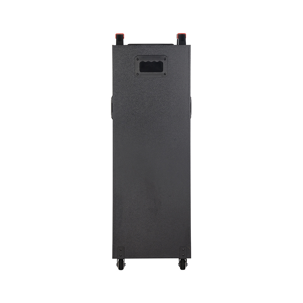 产品配置:双10寸木质音响,顶部模具调台60W8旋钮功放,前后万向轮,配双手咪,带遥控.