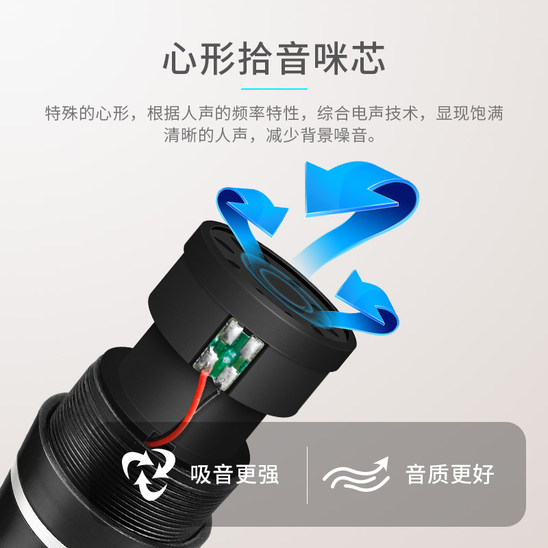 频率响应根据语音特征专门设计,中频区音质明亮并带低音频率衰减,可充分利用近邻效应。均匀的心形指向性能够有效地增强主声源,同时最大限度地抑制背景噪音,随话筒配有抗破裂180度旋转立式话筒适配器。气动减震话筒支座可降低握持话筒所产生的杂音,内装式圆形抗风噪和爆音的高效过滤网结构坚固可靠,经久耐用