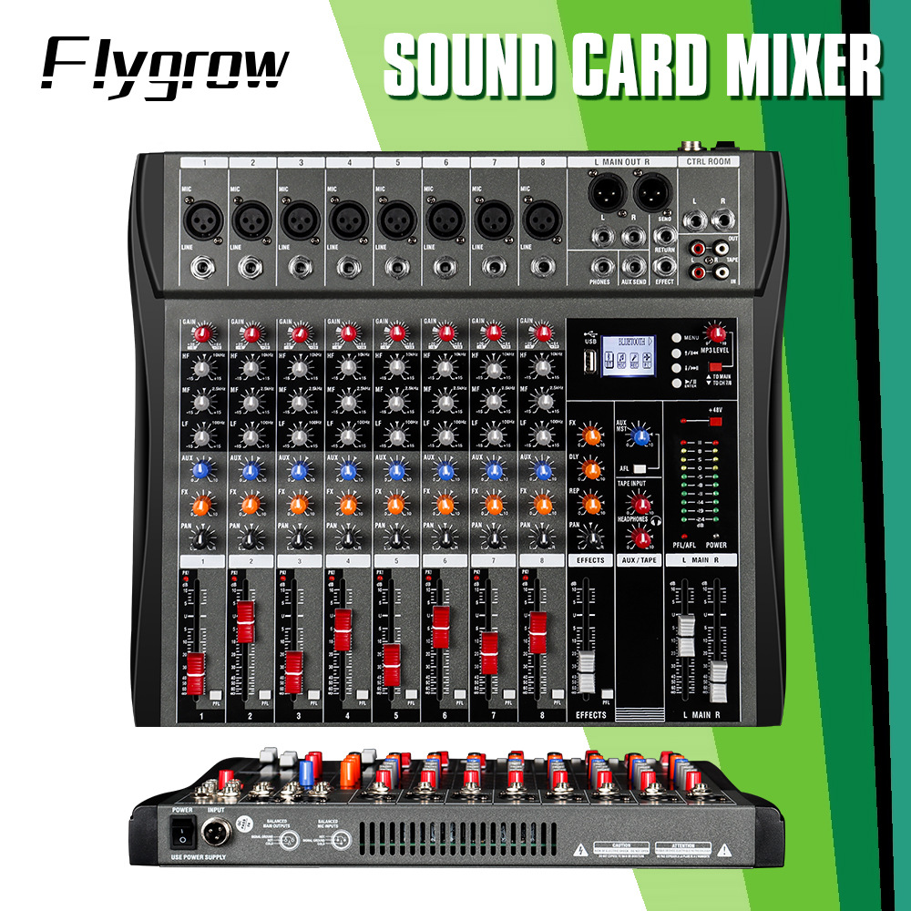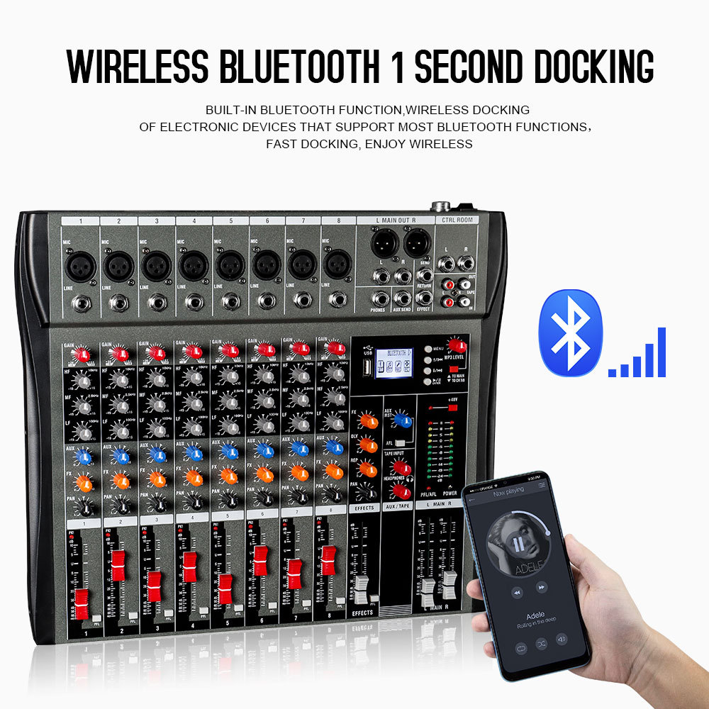 8-way mixer stage wedding banquet performance dedicated dj equipment with 48v power supply bluetooth usb mp3 mixer