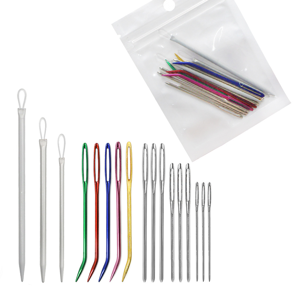 9 big eyes blunt needle +5 color big eyes curved needles +3 nylon thread small knitting needle Pearl film bags: 21.2G