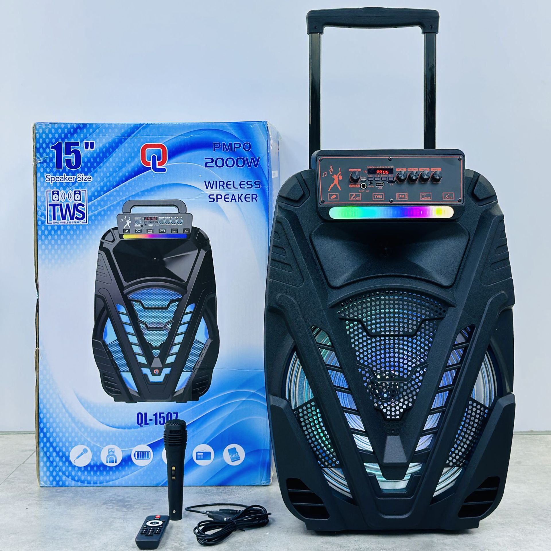 new 15-inch portable trolley bluetooth speaker high-power outdoor square dance rgb wireless large loudspeaker ql-1507