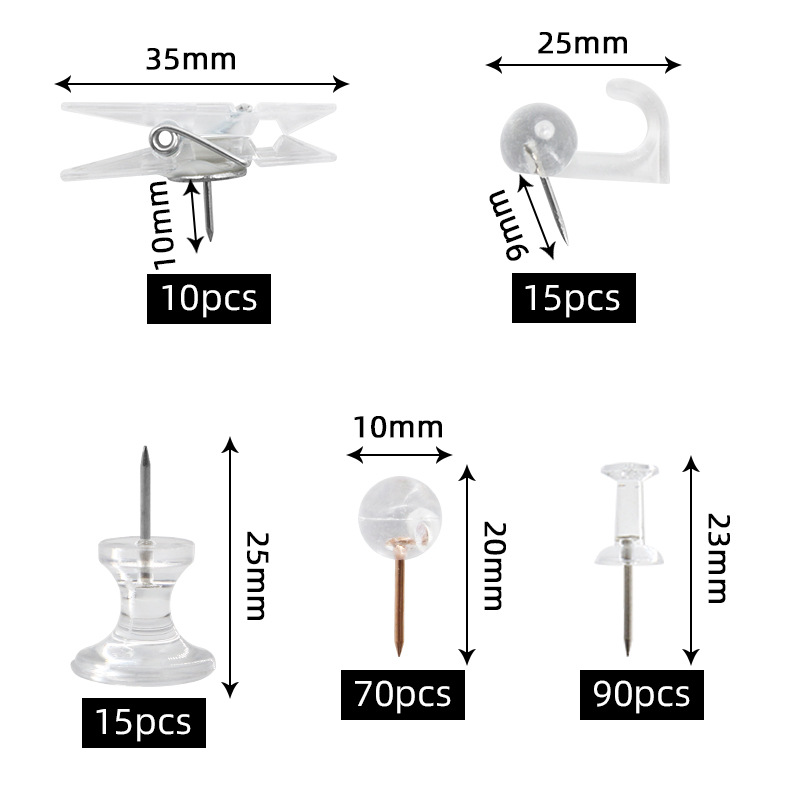 cross-border new arrival 200 pieces/box transparent white more than push pin specifications office tableware storage fixed decorative pushpins
