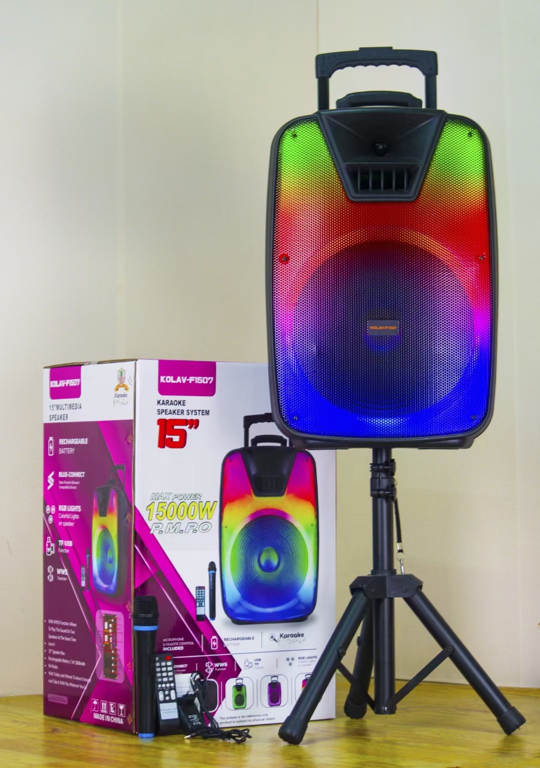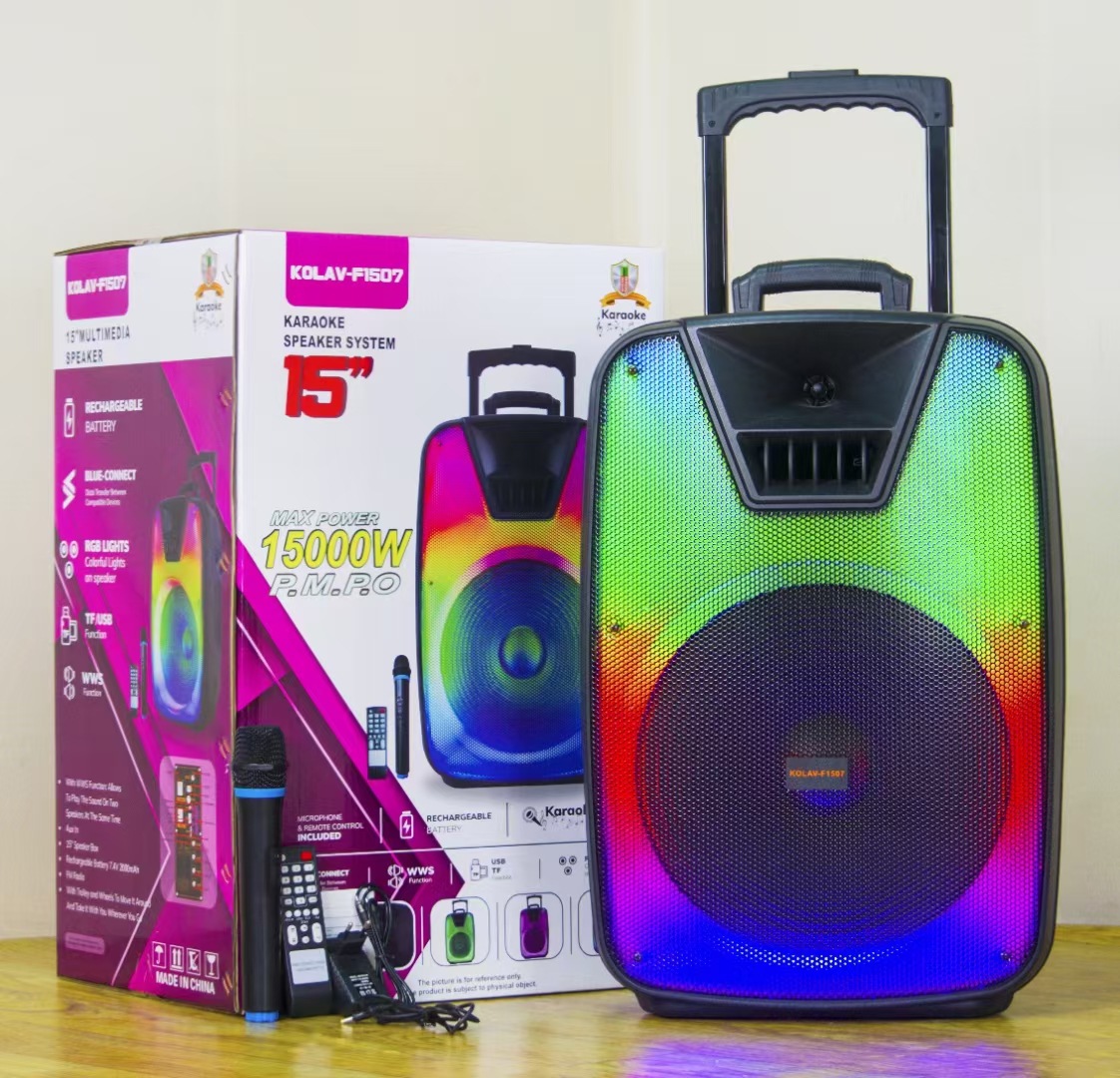cross-border new arrival 15-inch square dance outdoor portable bluetooth audio large volume bass pull rod flame light speaker