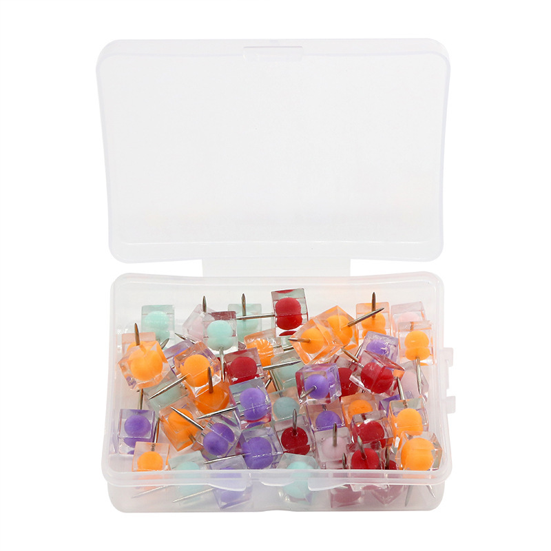Wholesale Creative Sandwich Candy Color Jelly Sense Square Box 50 Pieces Push Pin Office Culture Wall Decoration Pushpin