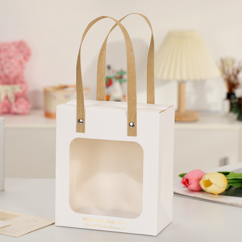 milky white + raffia + ribbon + pearl pendant; white cardboard; small size 14.5*8*16.5