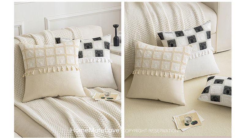 new mushroom plaid tassel pillow simple black and white home living room study ornament pillow bedside floor window mat