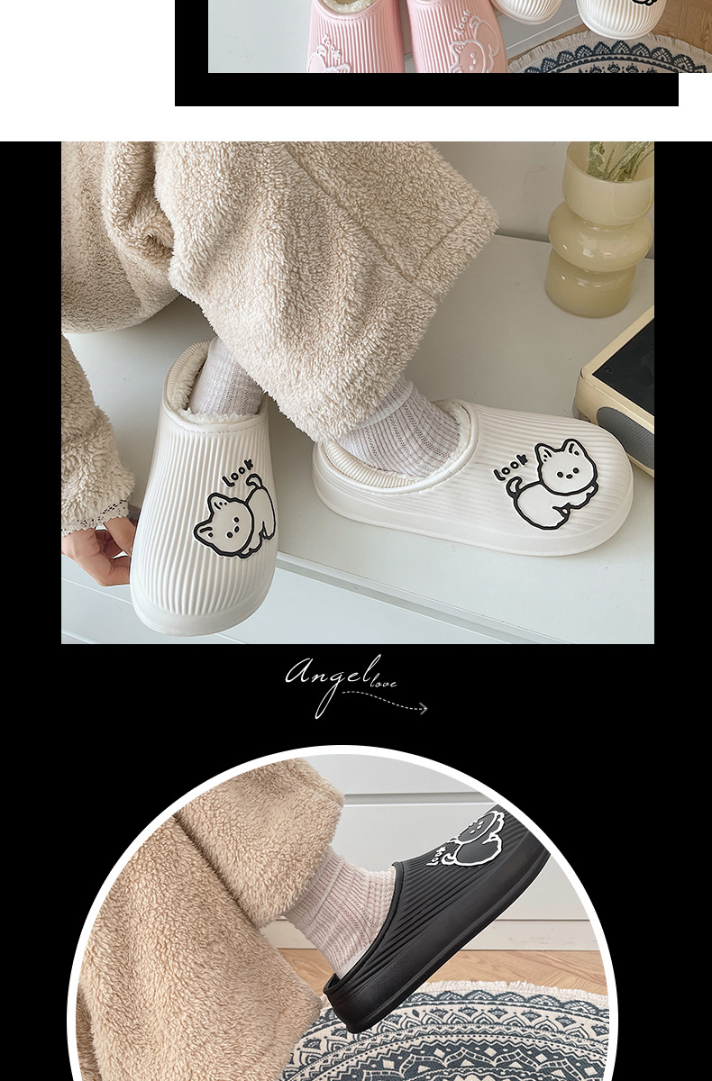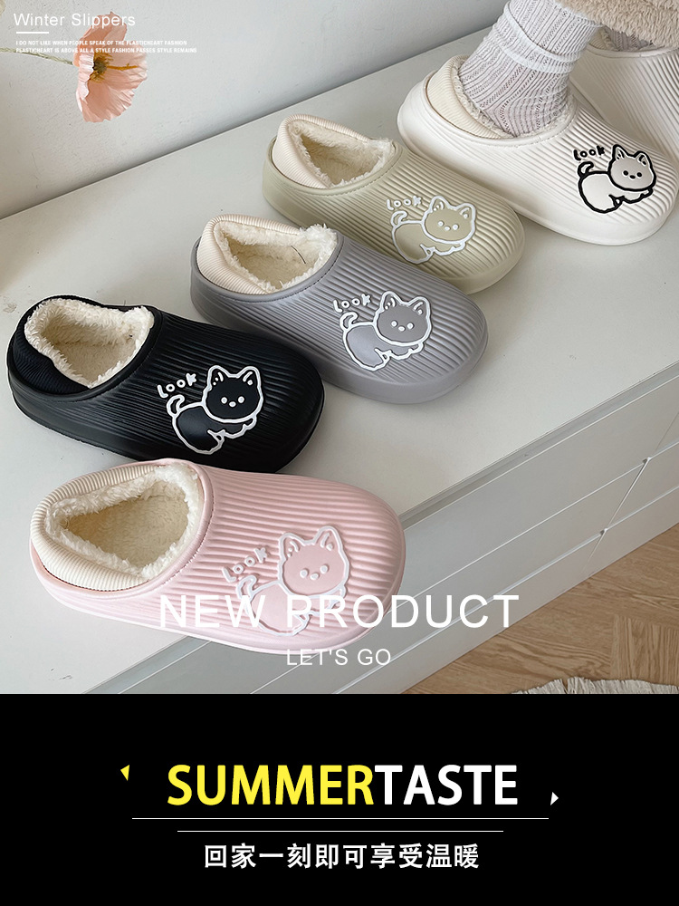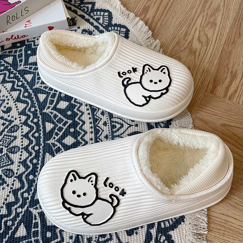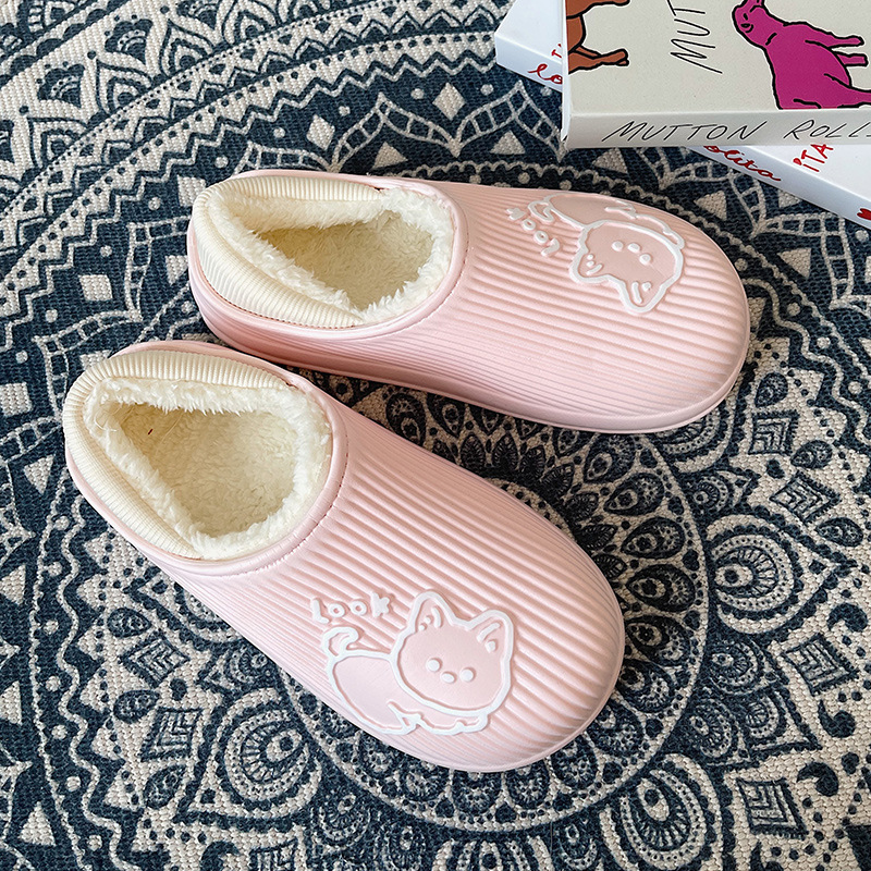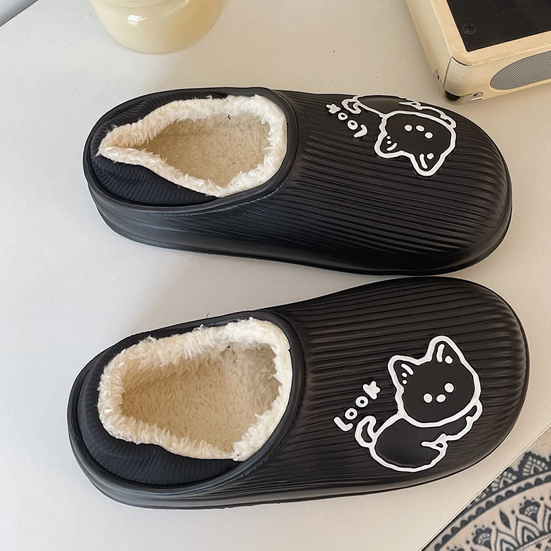 cotton slippers women's winter warm non-slip thick bottom couple new cute fluffy slippers men's home indoor home