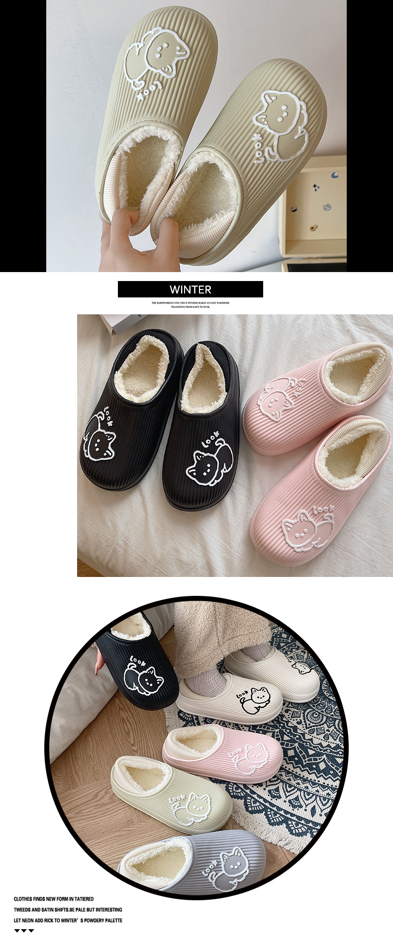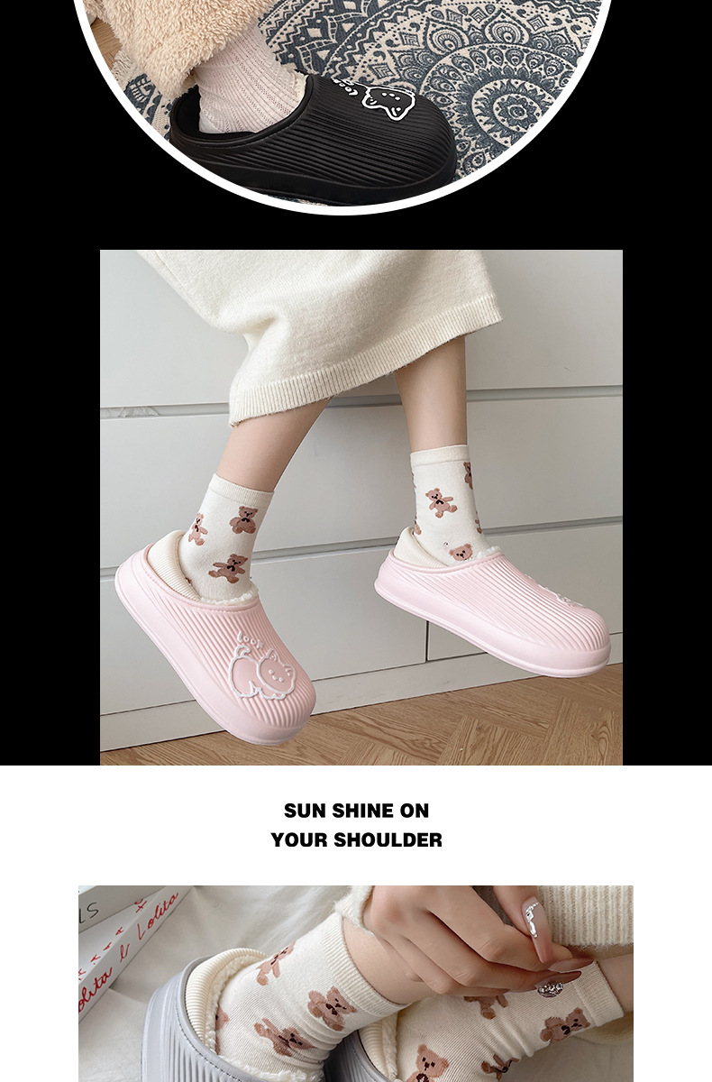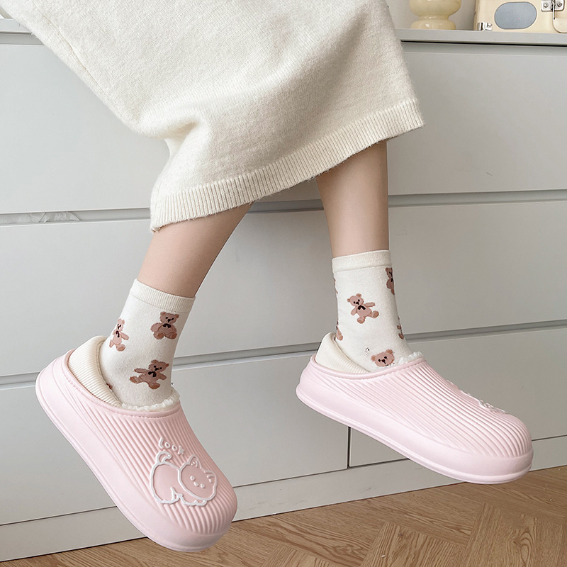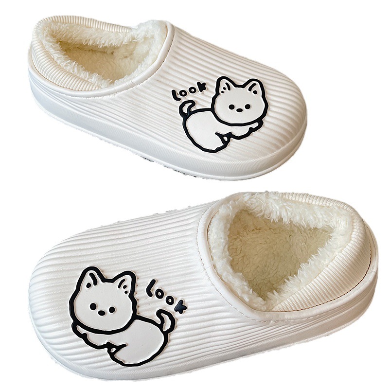 cotton slippers women's winter warm non-slip thick bottom couple new cute fluffy slippers men's home indoor home