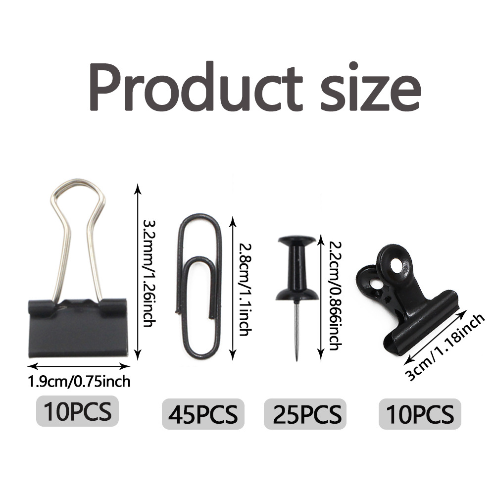 [Specification] 2.8cm clip 45 pieces, 2.2cm Push Pin 25 pieces, 1.9cm long tail clip 10 pieces, 3cm metal ticket folder 10 pieces