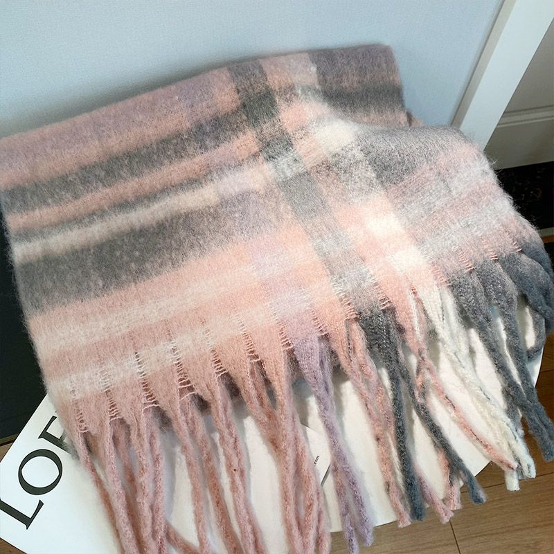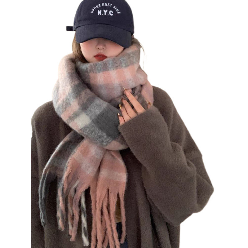 korean style plaid shawl tassel circle yarn scarf women's winter japanese style students travel all-matching thick warm scarf