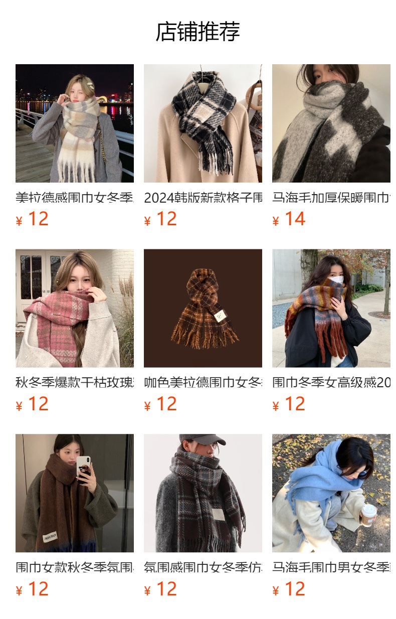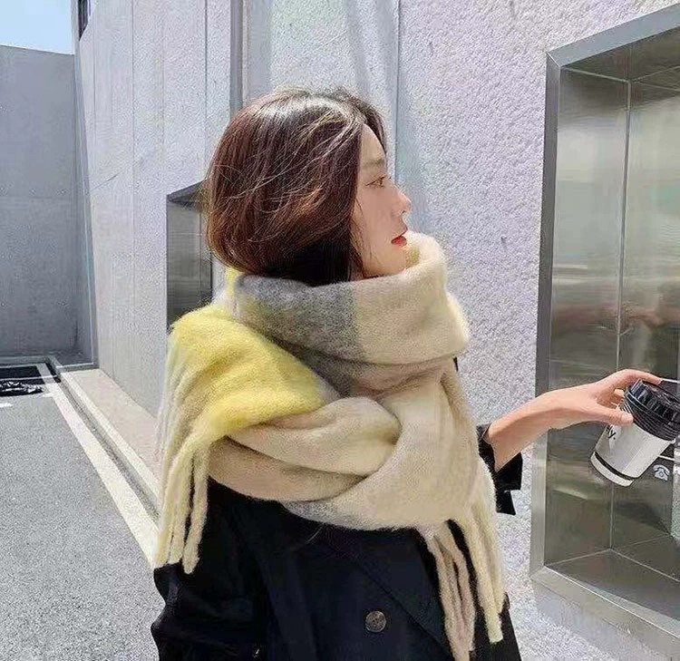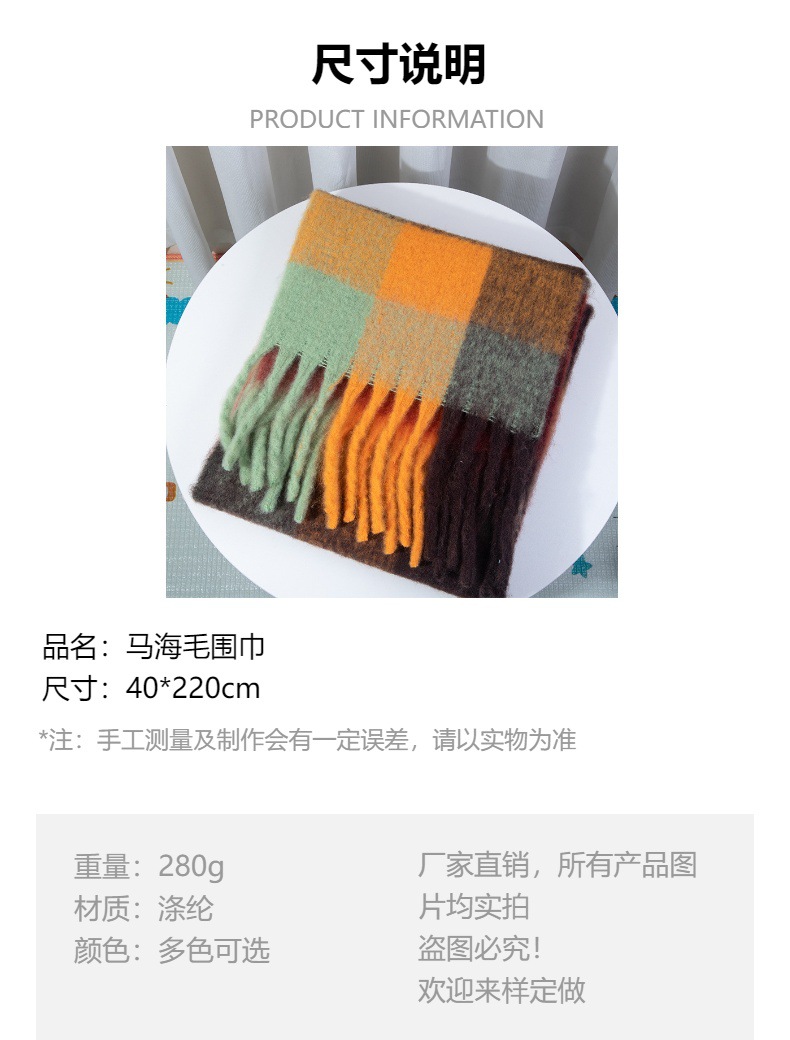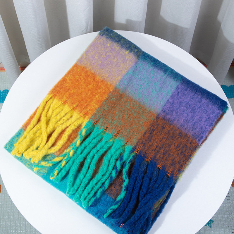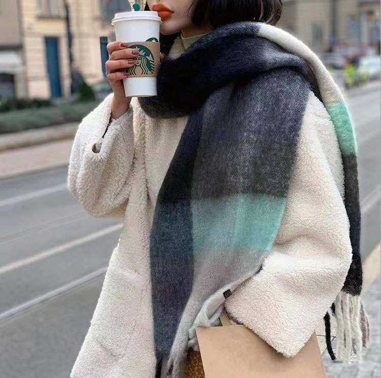 autumn and winter thickening mohair plaid scarf girly atmosphere thickened warm shawl european and american fashion fringe bib