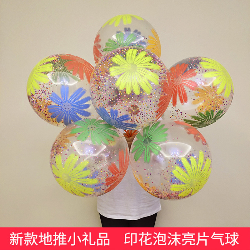 cross-border 12-inch chrysanthemum foam sequins paper scrap balloon wholesale push small gift internet celebrity drainage rubber balloons