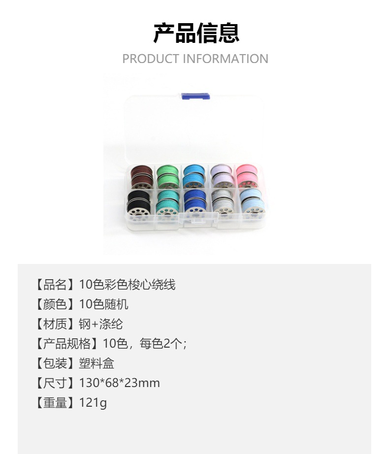 Cross-Border Wholesale 10 Color Random Coil Bobbin Core Household Old Sewing Machine Accessories Bottom Line with Box Bobbin Core Box Set