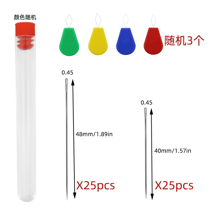 accessories: 25 pieces 0.45 * 40mm,25 pieces 0.45 * 48mm, three random colors needle-threader, storage container one