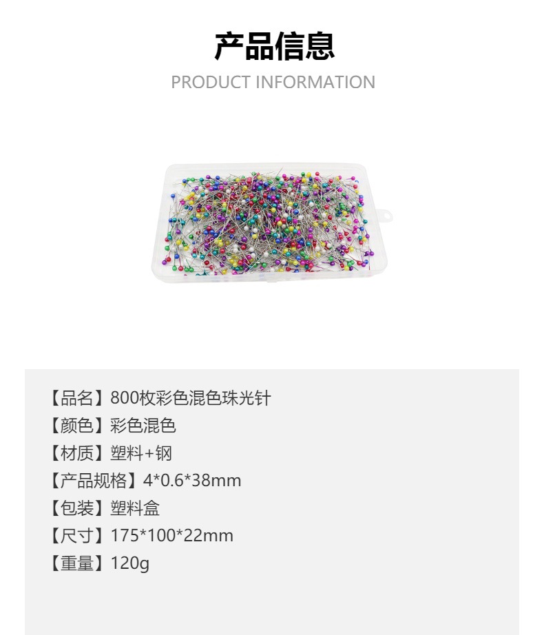 Cross-Border Wholesale 800 Pieces/Boxed Color Pearl Needle Household Sewing Patchwork Needle Clothing Fabric Decoration Fixing Needle