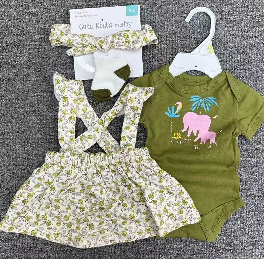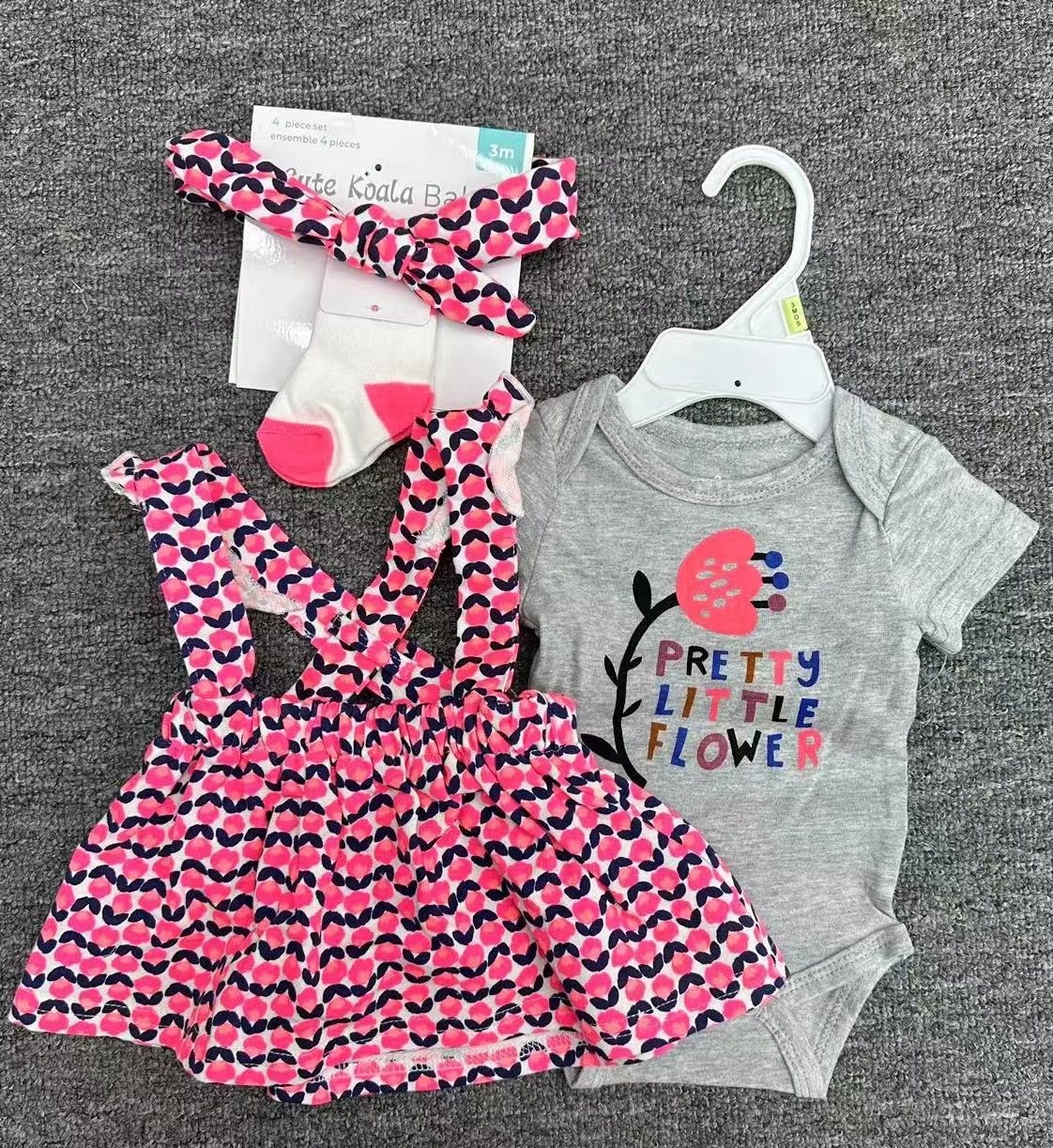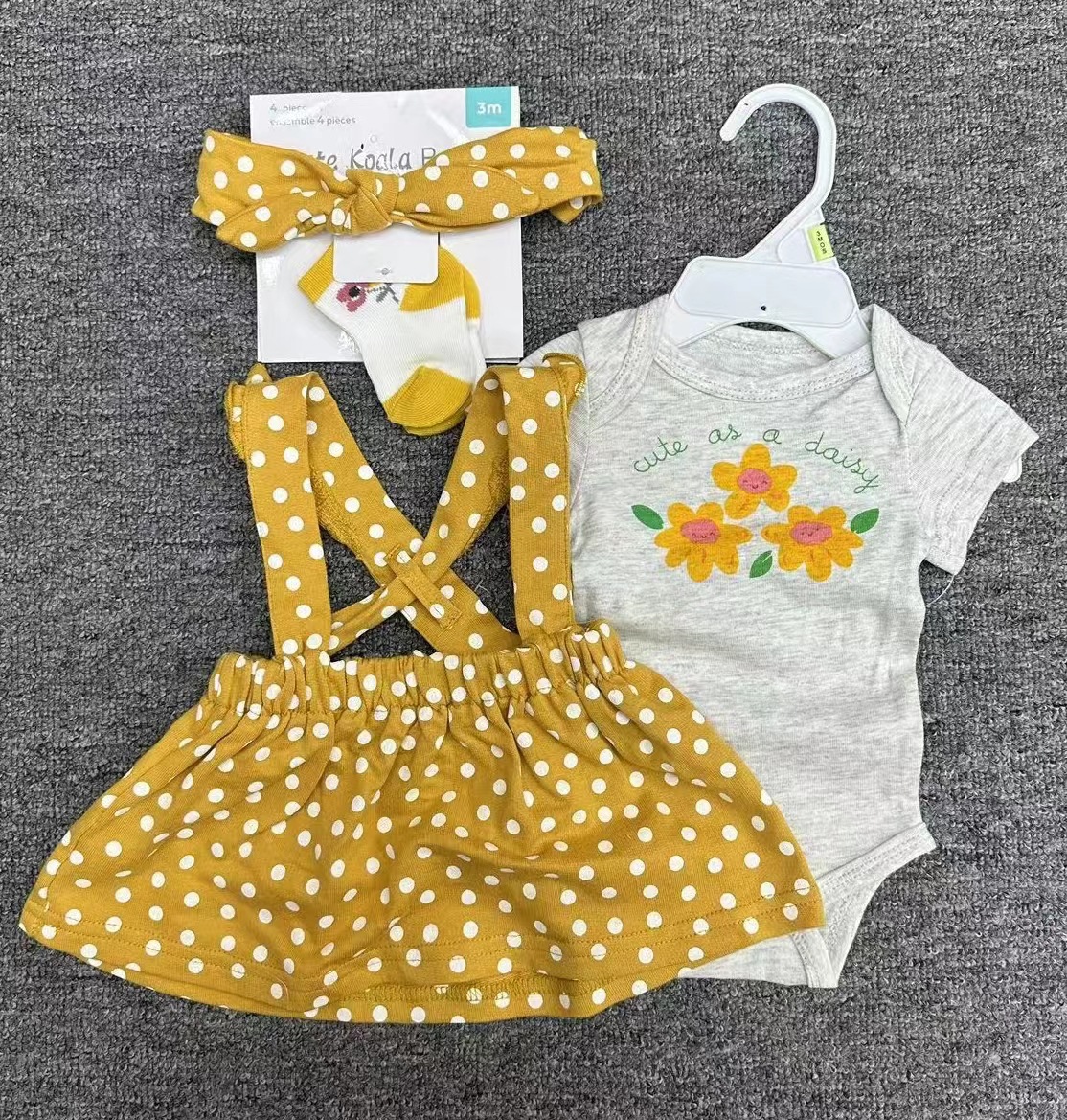 Short-sleeved baby clothes + overalls + socks + hair band