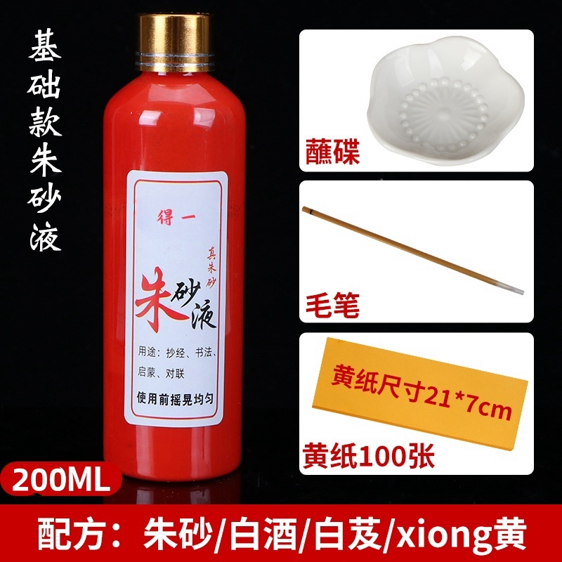 cinnabar liquid 200 ml + writing brush multifunctional ink plate + yellow paper 100 pieces