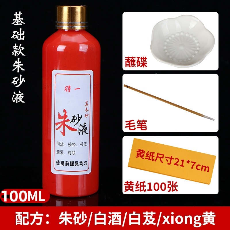 cinnabar liquid 100 ml + writing brush multifunctional ink plate + yellow paper 100 pieces