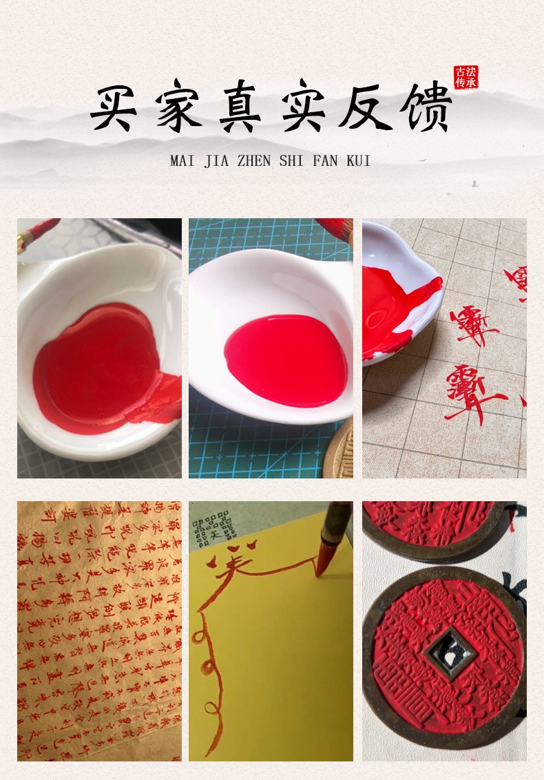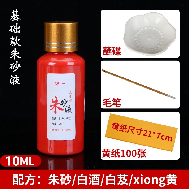 cinnabar liquid 10 ml + writing brush multifunctional ink plate + yellow paper 100 pieces
