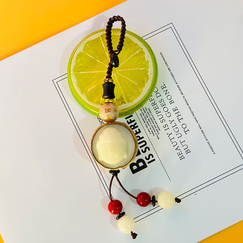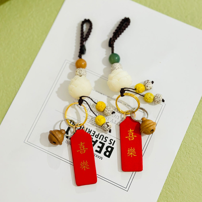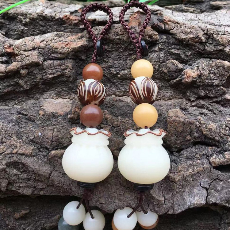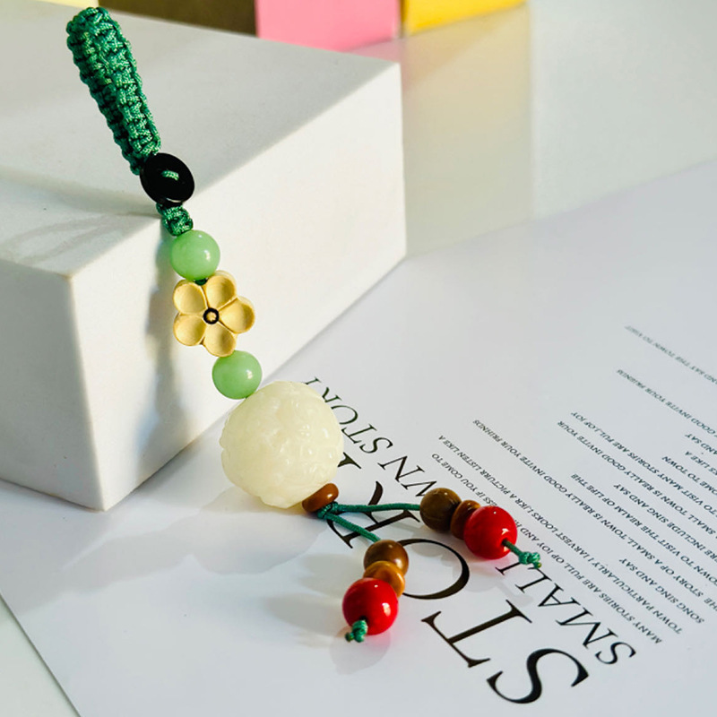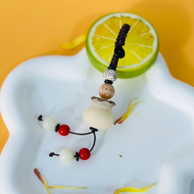(red luck lucky bag hanging ornament) white jade bodhi root carved lucky bag random matching the cinnabar style on the picture is shipped randomly
