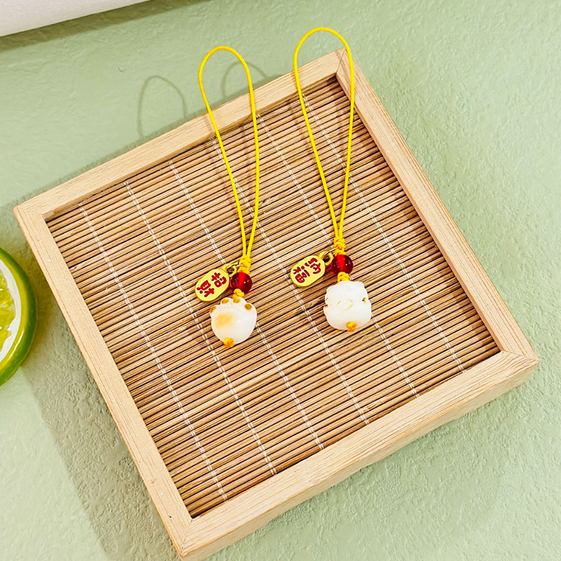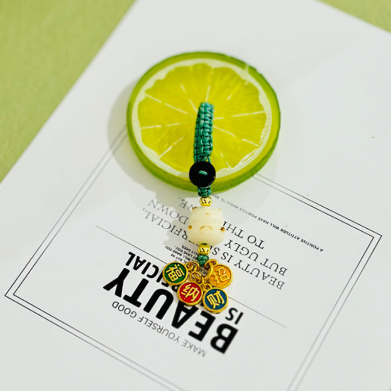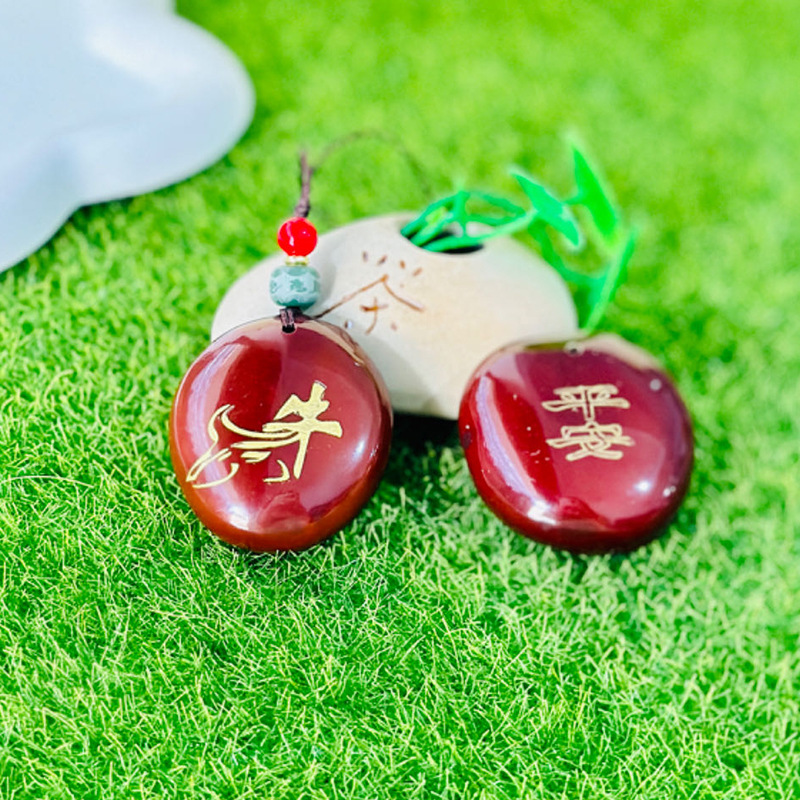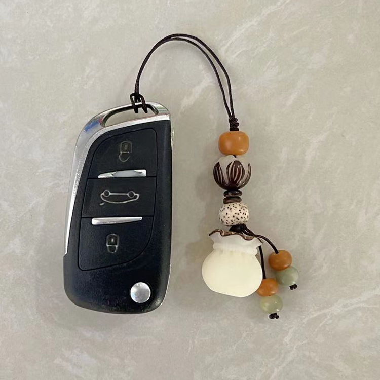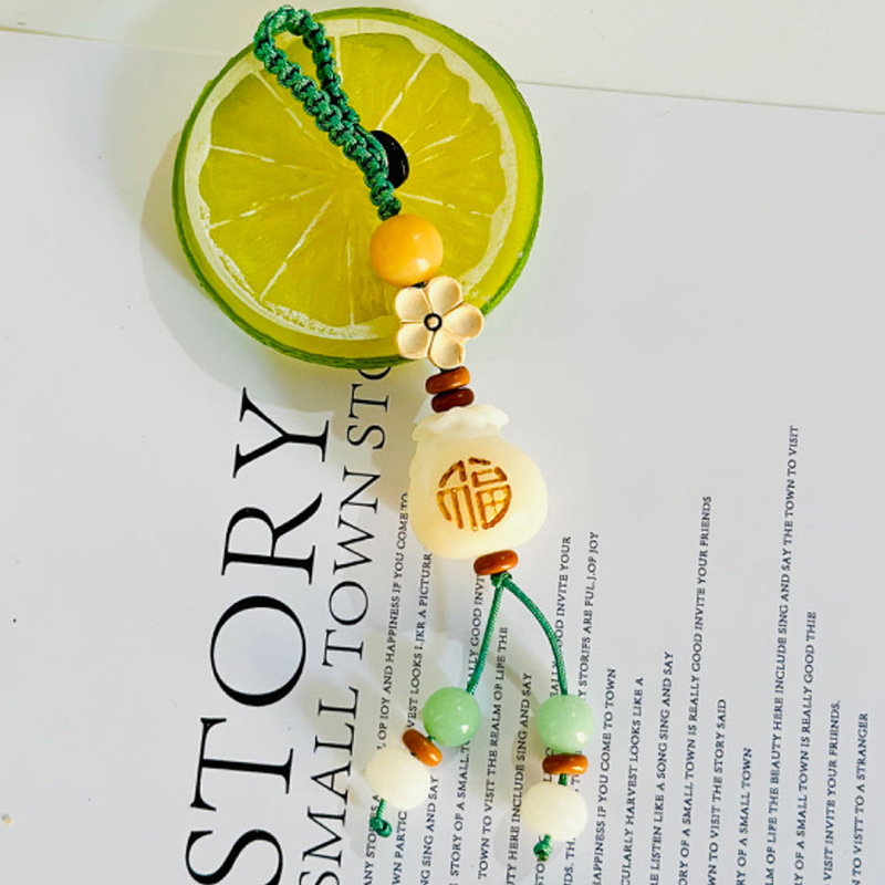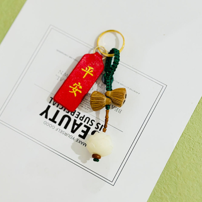(red luck lucky bag hanging ornament) white jade bodhi root carved lucky bag random matching the cinnabar style on the picture is shipped randomly