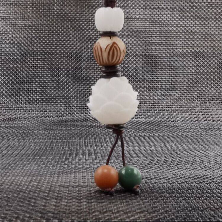 (patterned leather side) carved lotus white jade bodhi root + carved lotus bodhi root + weathering color bodhi seed