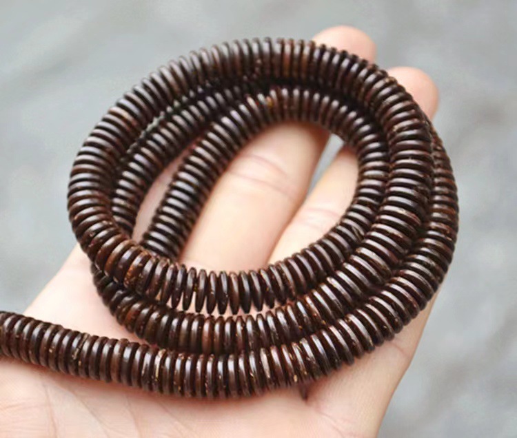 (bodhi root raw leather barrel beads) carved lotus bodhi root + weathering color bodhi seed