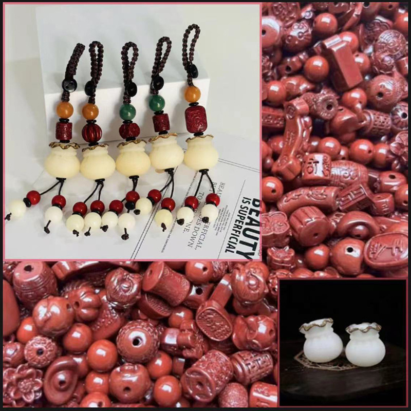 (hongyun lucky bag) white jade bodhi root carved lucky bag random matching the cinnabar style on the picture is shipped randomly