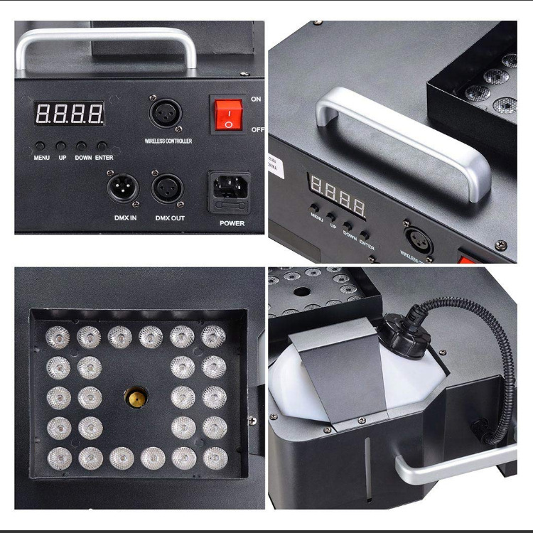 Super quality 24pcs RGB 3 in 1 3W LED High Power DMX512 Remote Control 1500W up Fog Machine stage Nightclub Bar Atmosphere Machine factory wholesale
