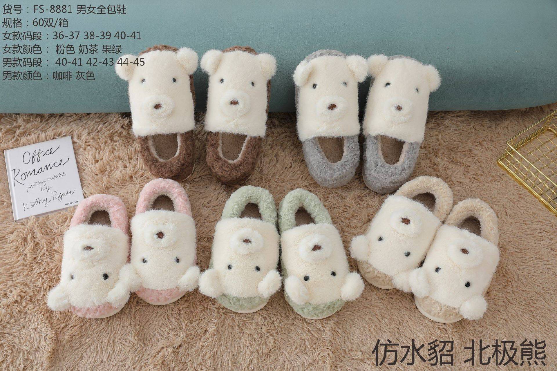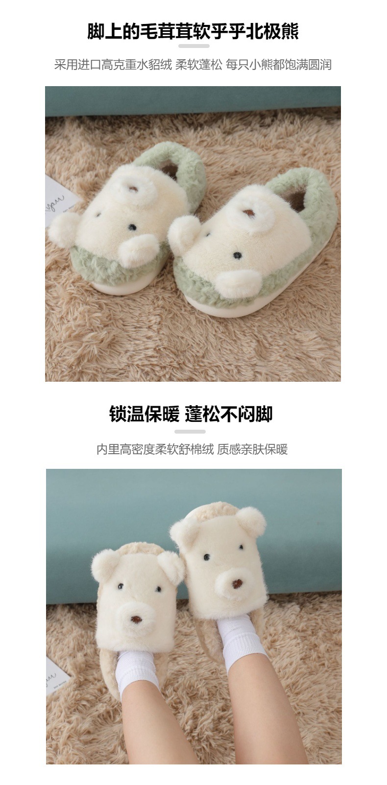 Mink fur polar bear bag with fur and fur-lined cotton shoes