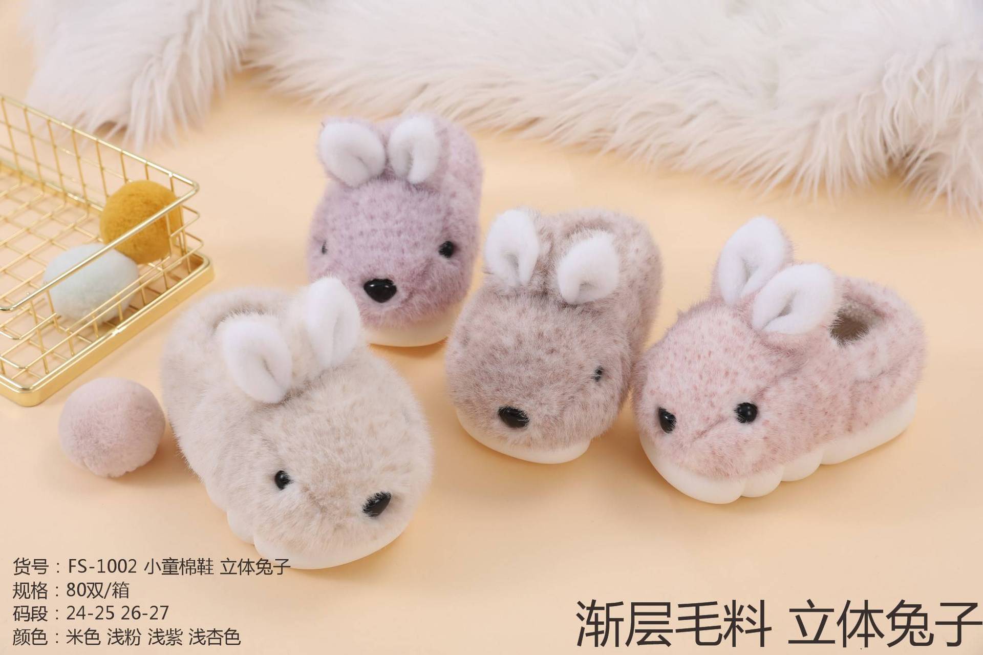 Children's plush rabbit bag and fur-lined cotton shoes