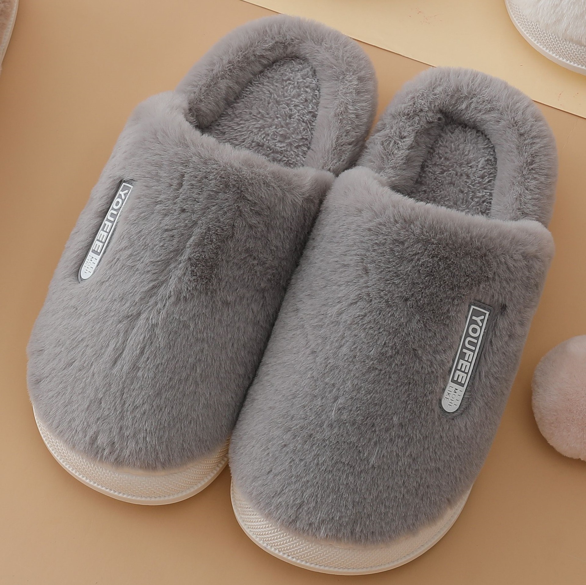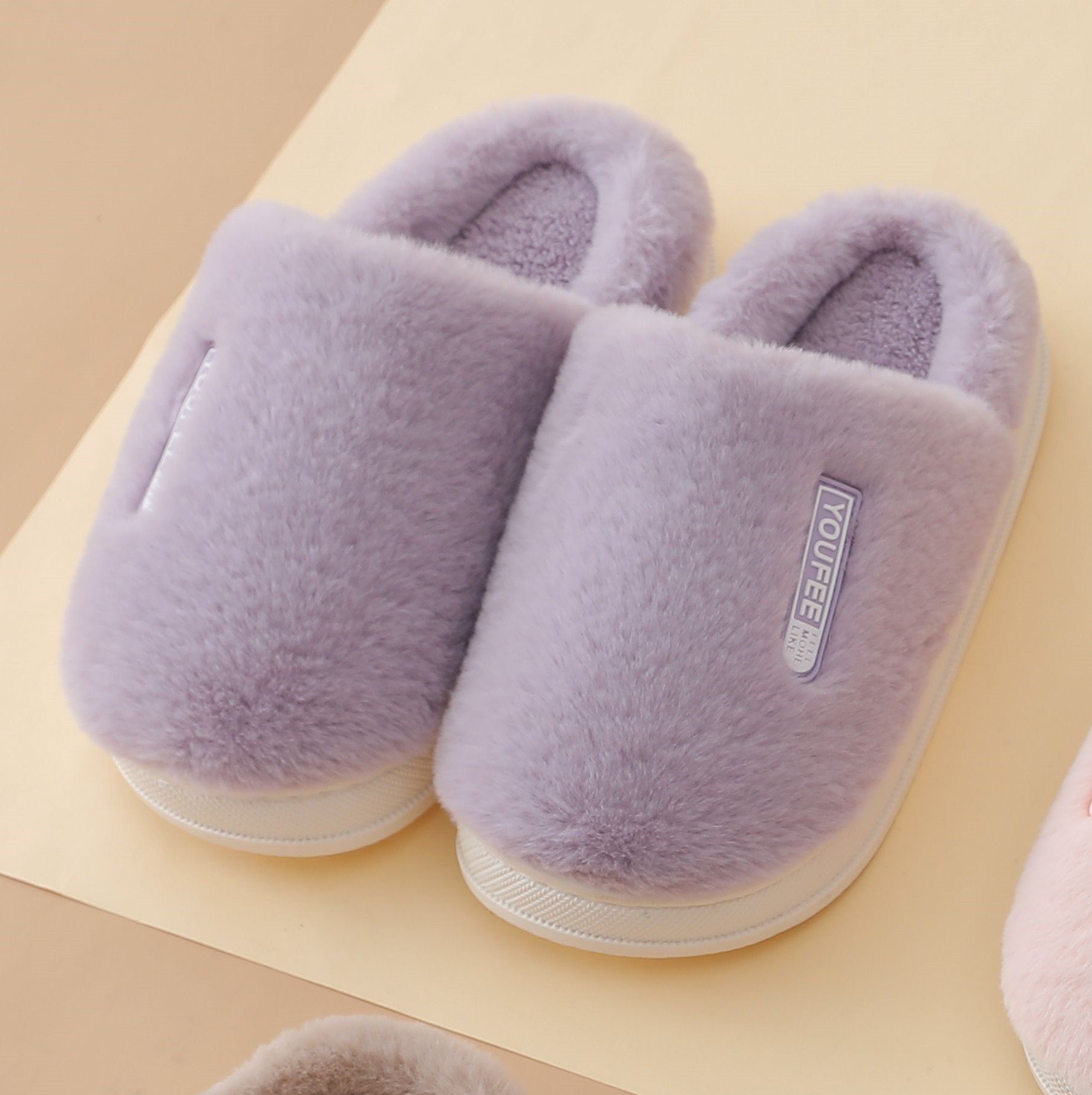 Minimalist Macarons Rabbit Fur Home Cotton Slippers