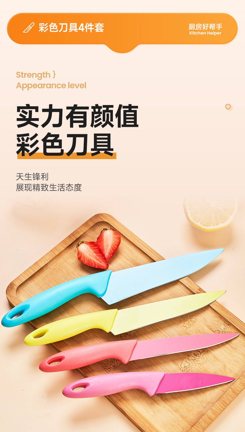 colorful knives set of 4 suction card packaging colorful handle painted knife set household chef knife fruit knife gift knives