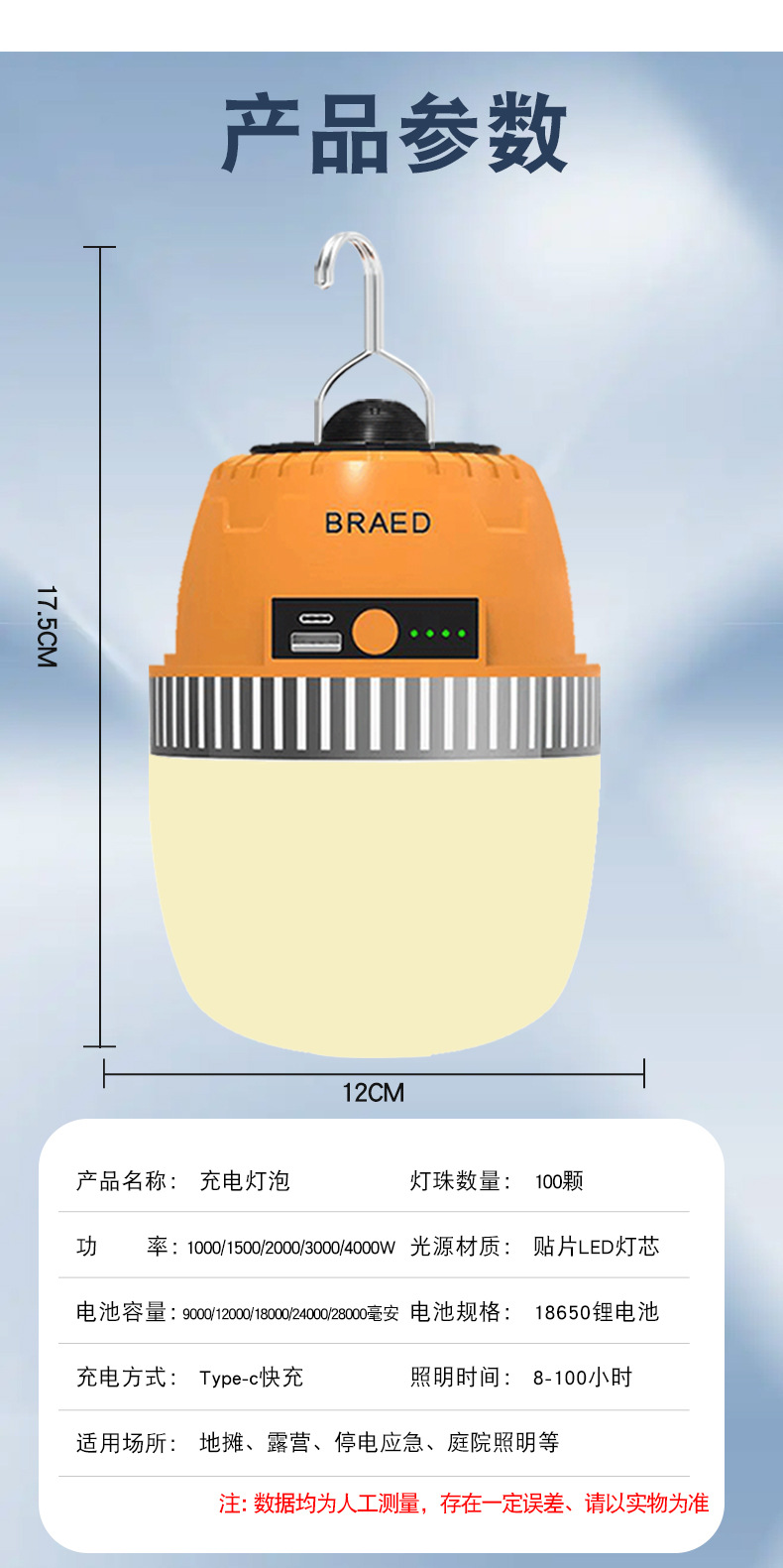 [warm light] 4000w [28000 ma] battery life 108 hours