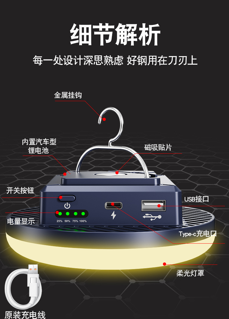 [warm light] 1000w [7200 ma] battery life 36 hours