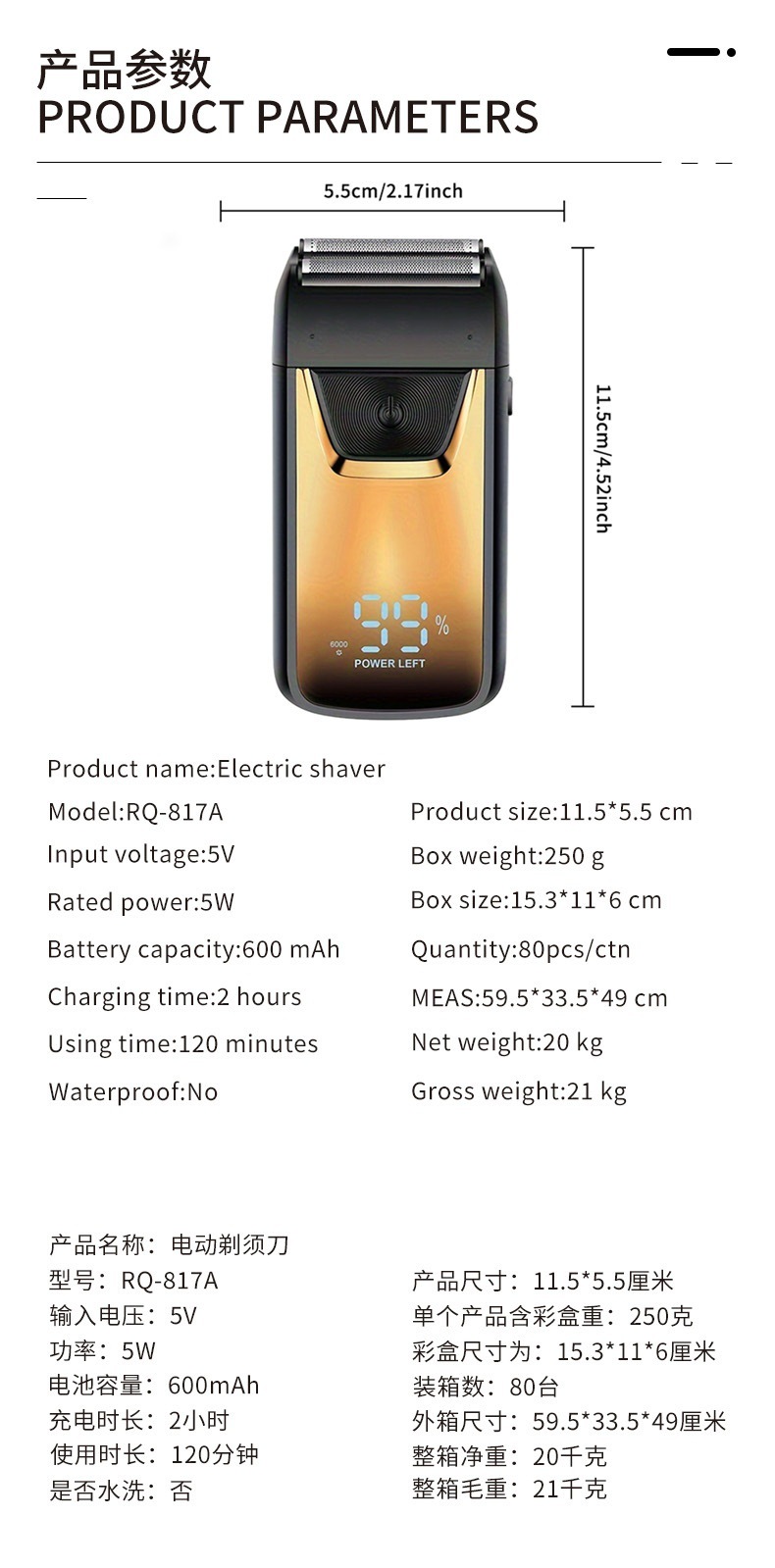 | 817 digital display gold (without hair trimmer) | CN¥ 39.0 | 999999 piece available |