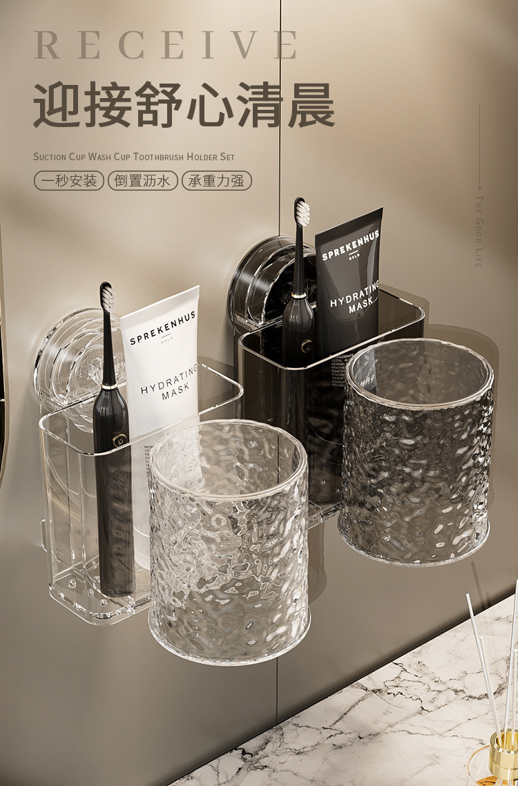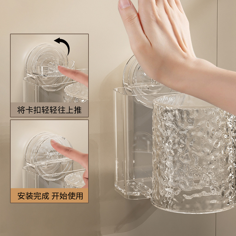 sucker washing cup toothbrush rack suit-transparent color