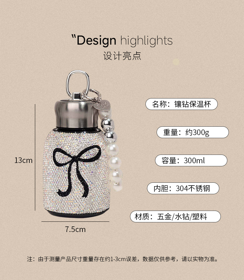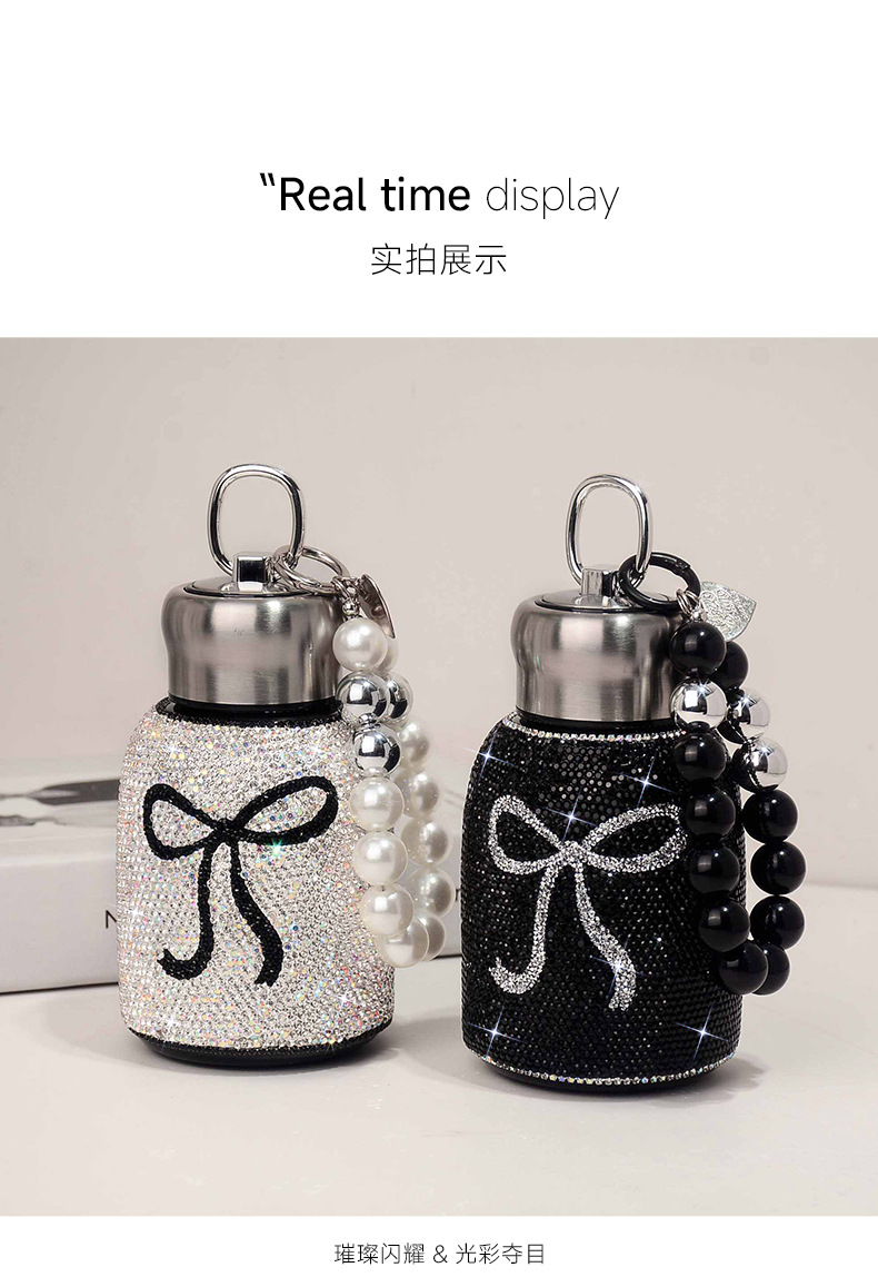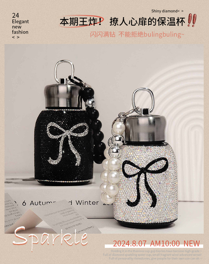 good-looking luxury diamond-embedded vacuum cup portable 304 stainless steel portable bow big belly cup car water cup tide