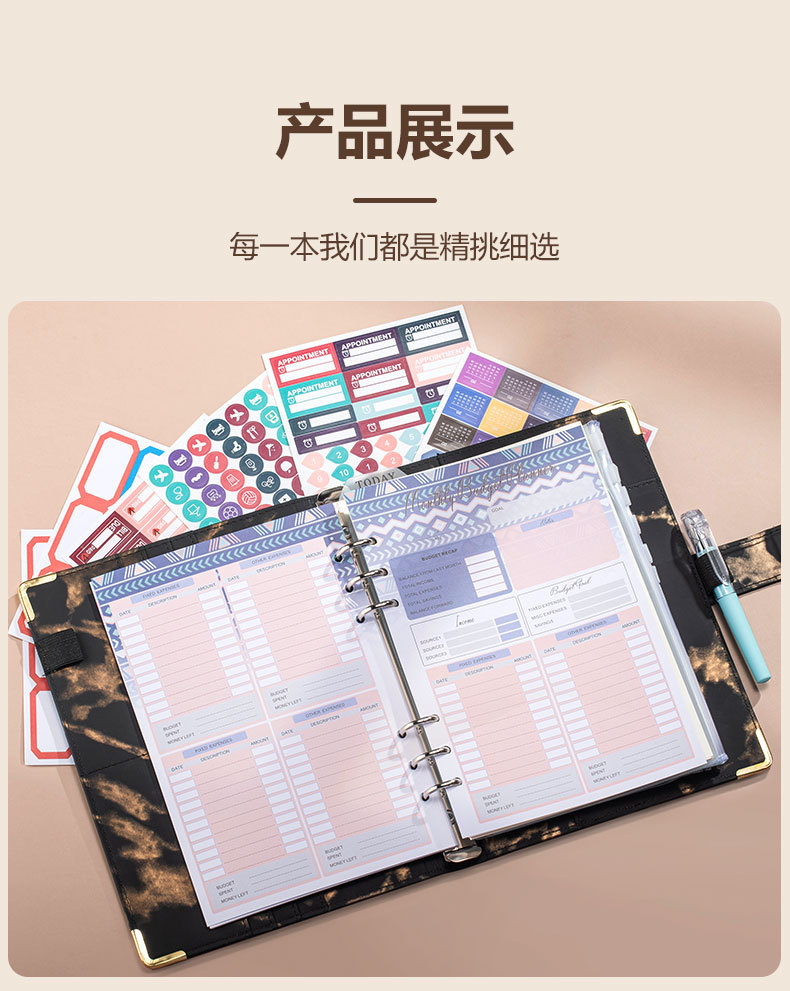 black (zipper bag 12 + geometric budget card 12 + horizontal line 45 + ruler 1 + theme planning 4+24 stickers 2)