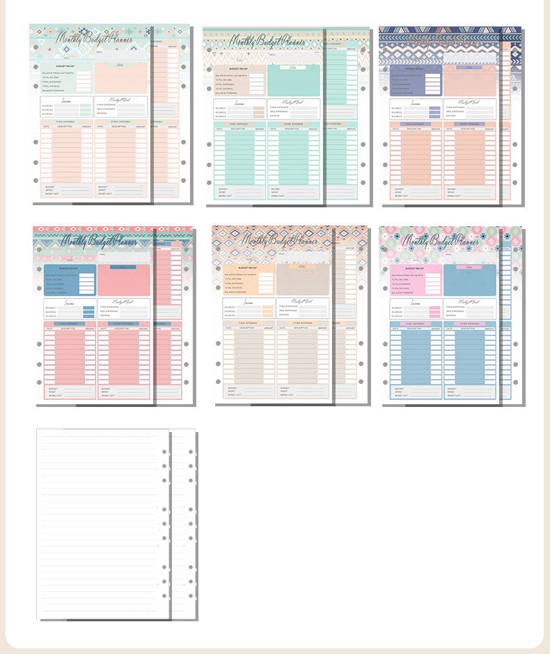 white (zipper bag 12 + geometric budget card 12 + horizontal line 45 + ruler 1 + theme planning 4+24 stickers 2)