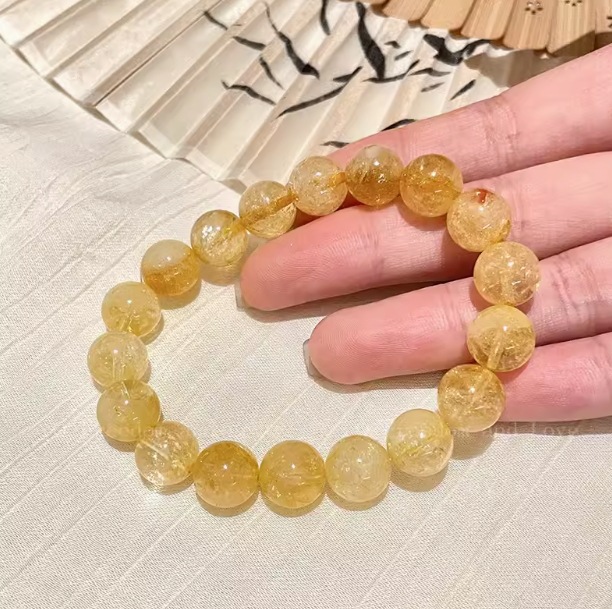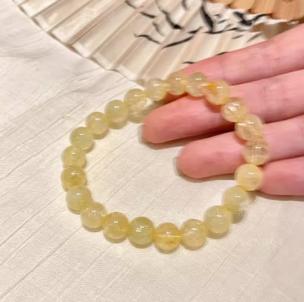 6# clear gold rutilated quartz beaded bracelet large