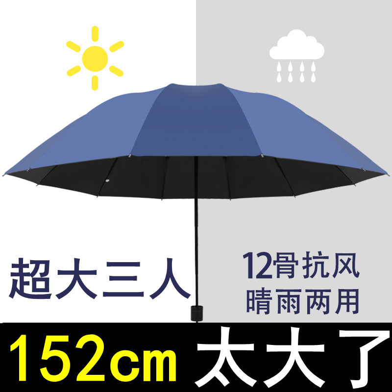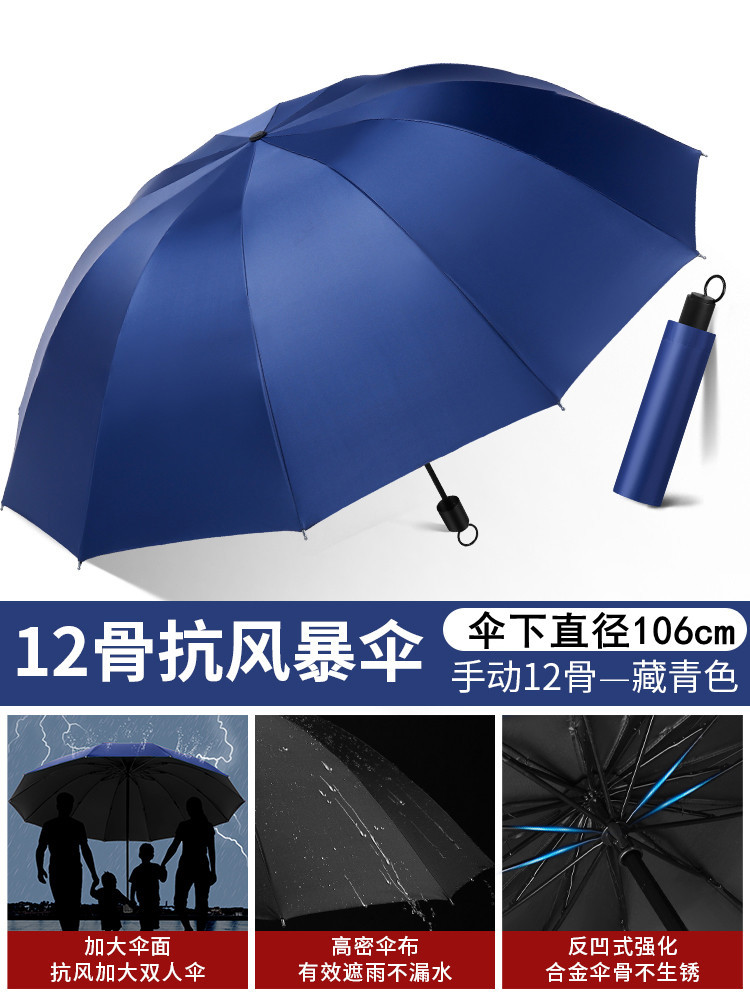 12 bone reinforcement black glue upgrade [navy blue] umbrella for 3 persons