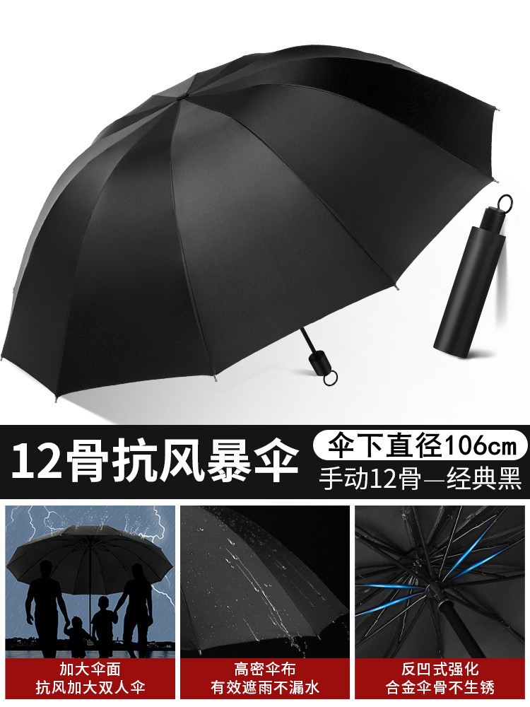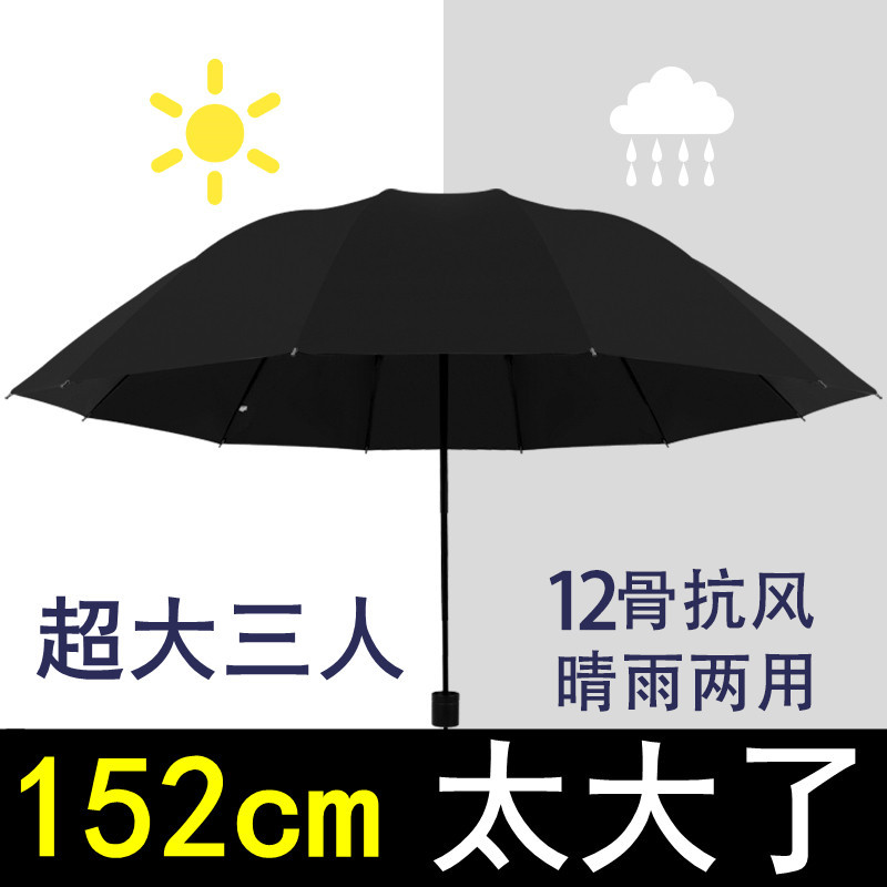 12-bone reinforced vinyl upgraded [black] umbrella for 3 persons