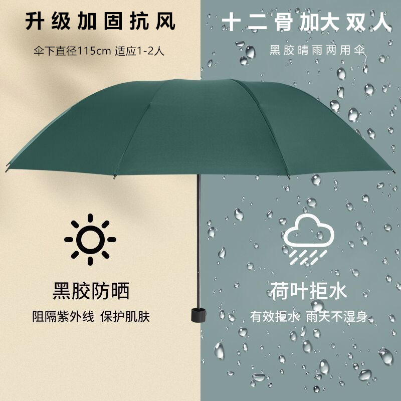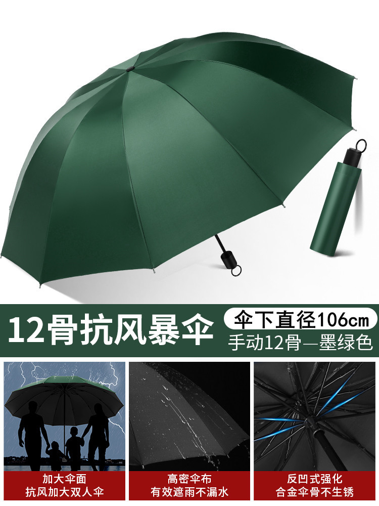 12-bone reinforced vinyl upgraded [dark green] umbrella for two persons