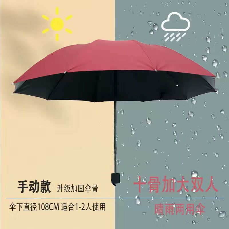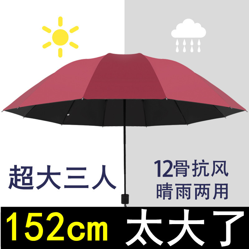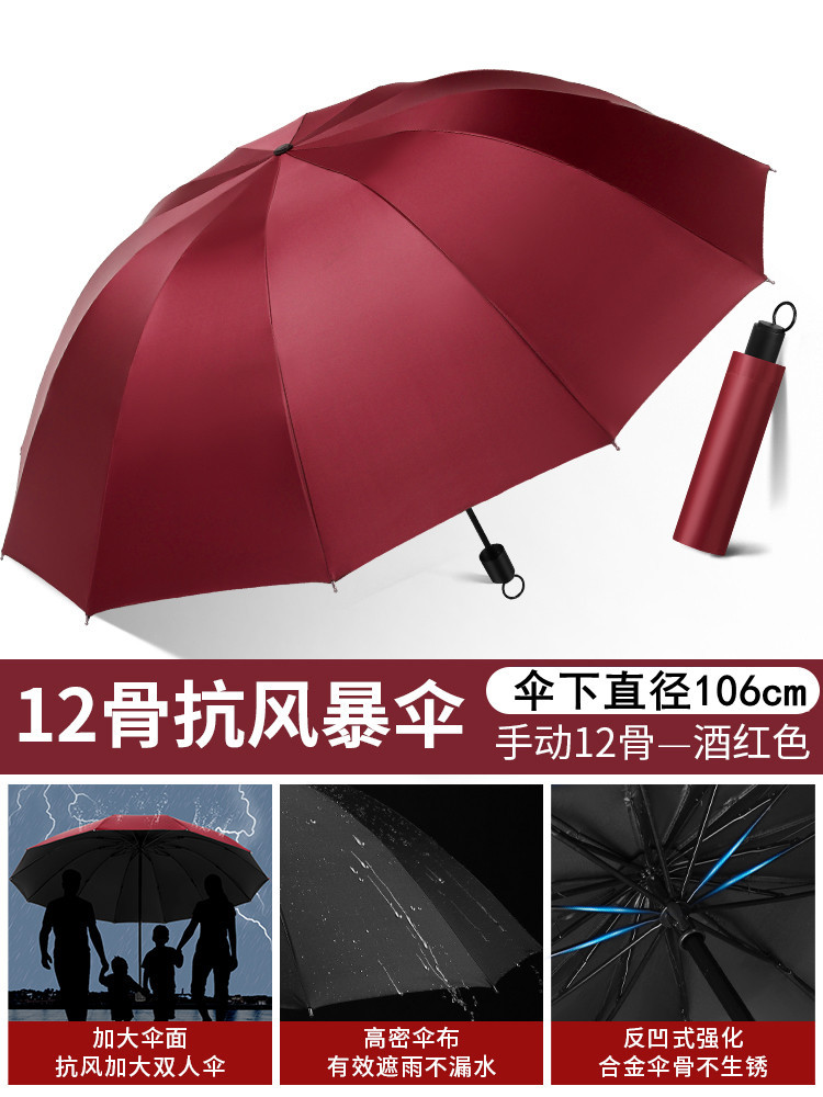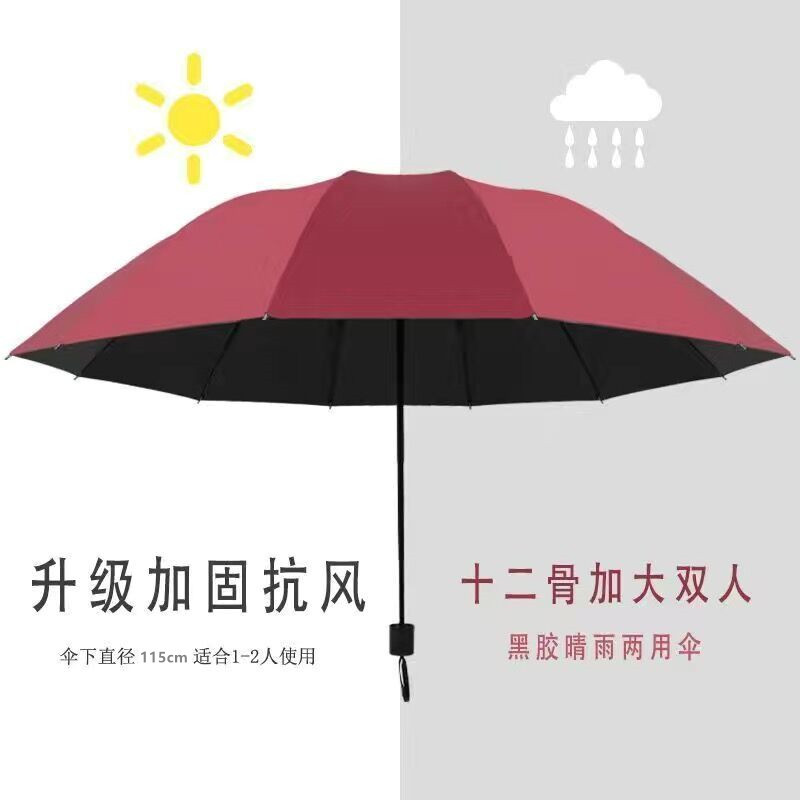 12 bone reinforcement black glue upgrade [wine red] umbrella for two persons