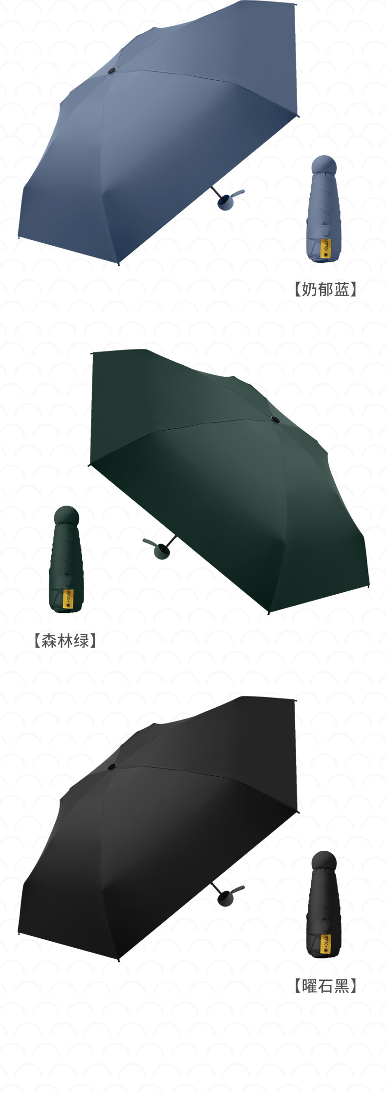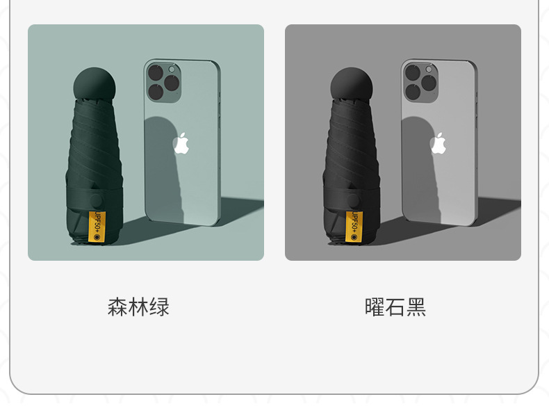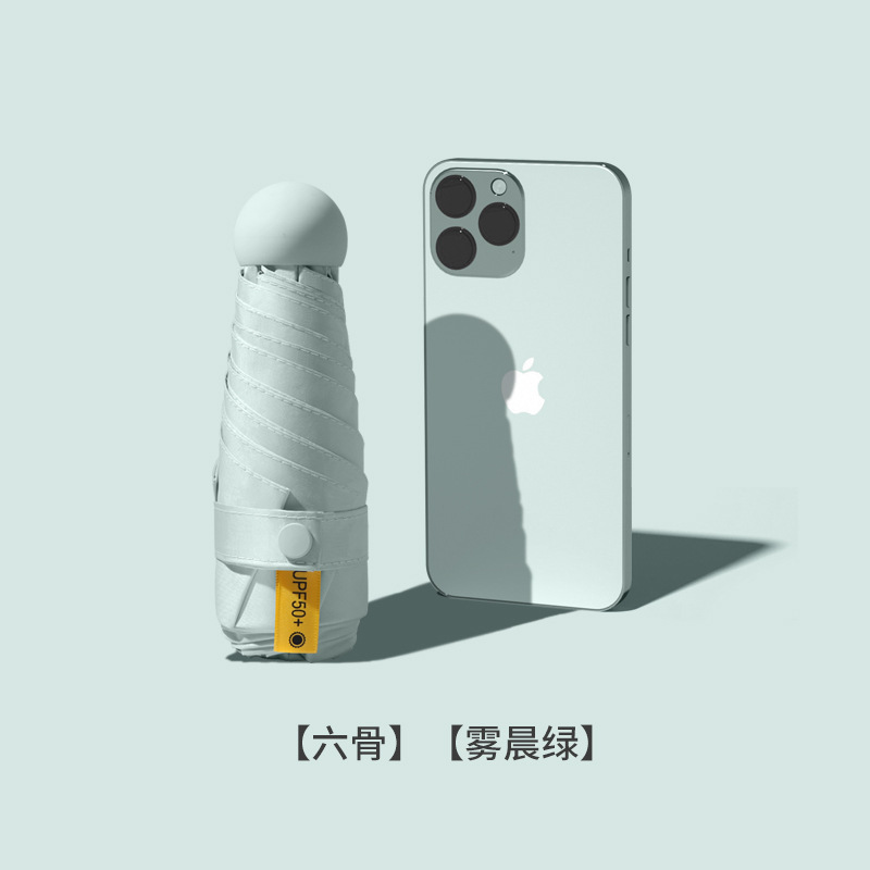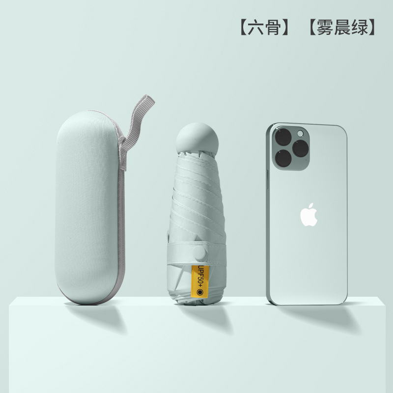 morning mist green-14cm black rubber umbrella