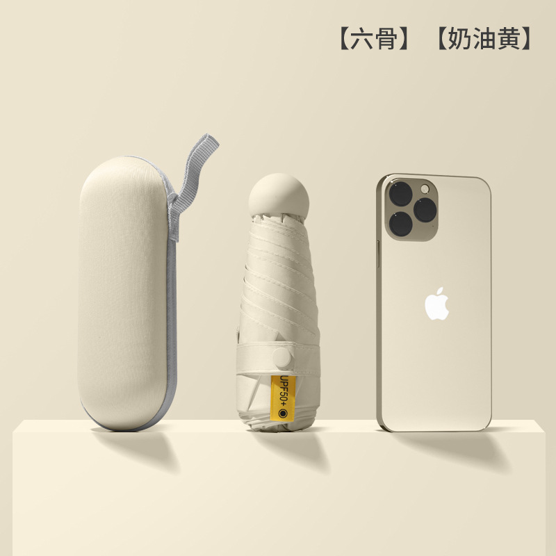 cream yellow-14cm black rubber umbrella + box
